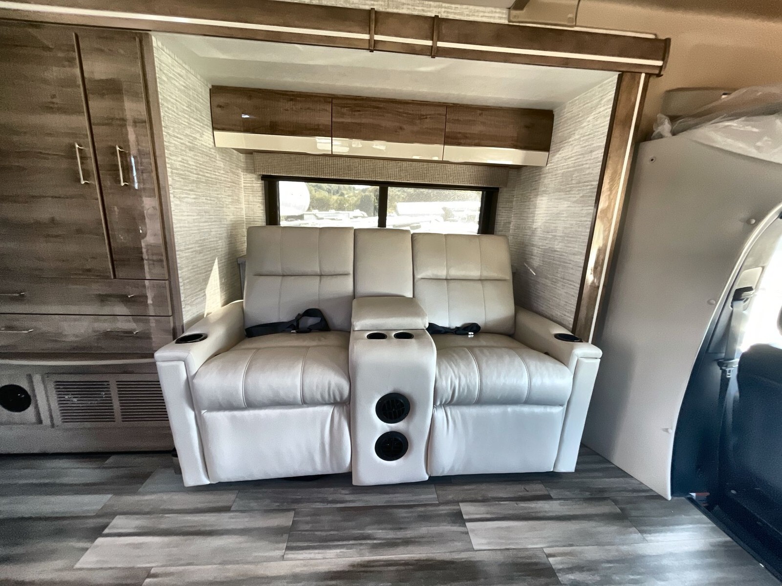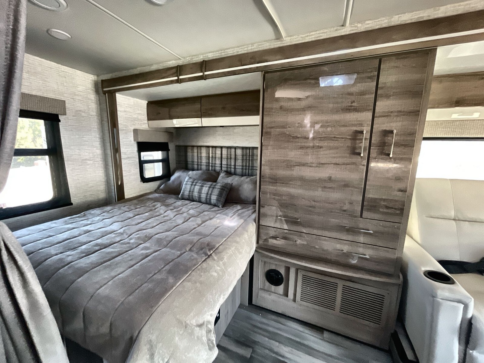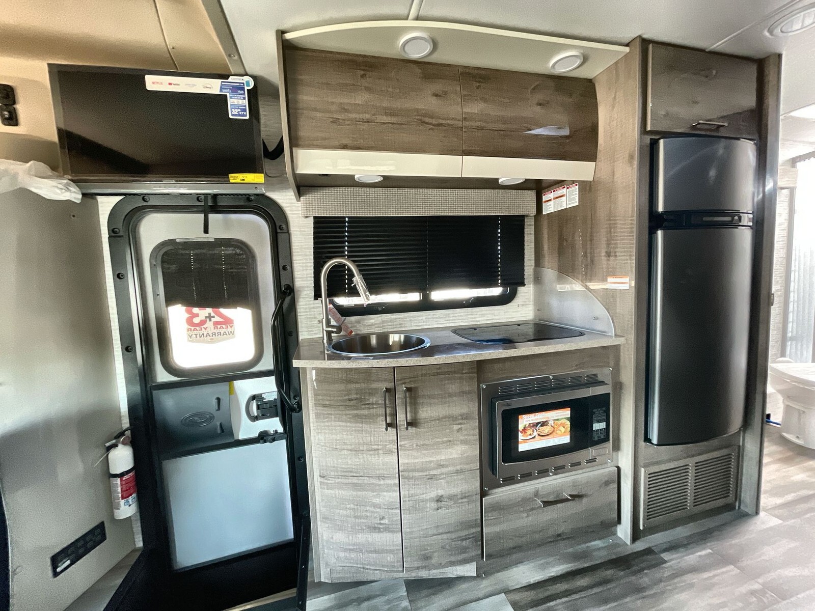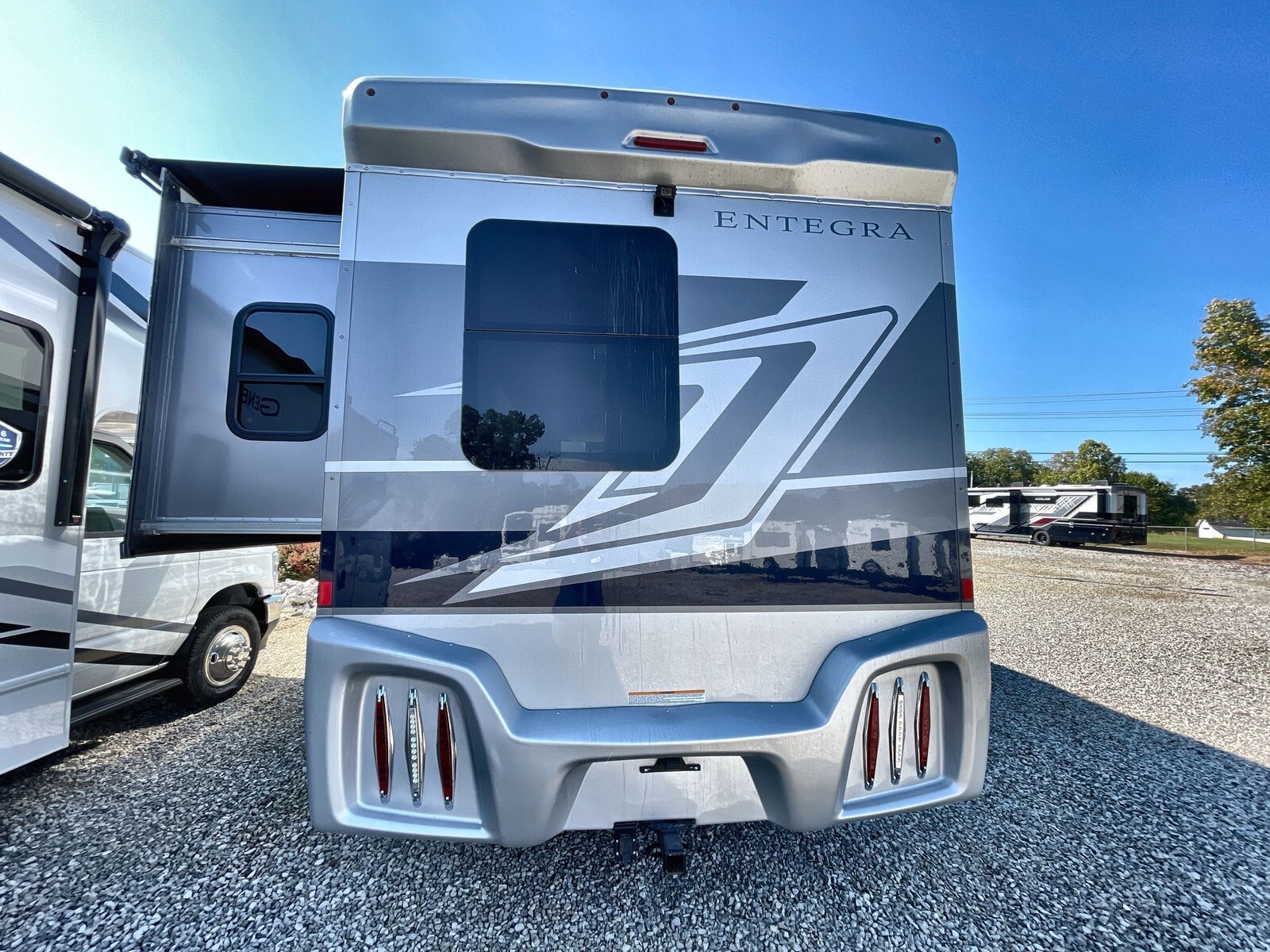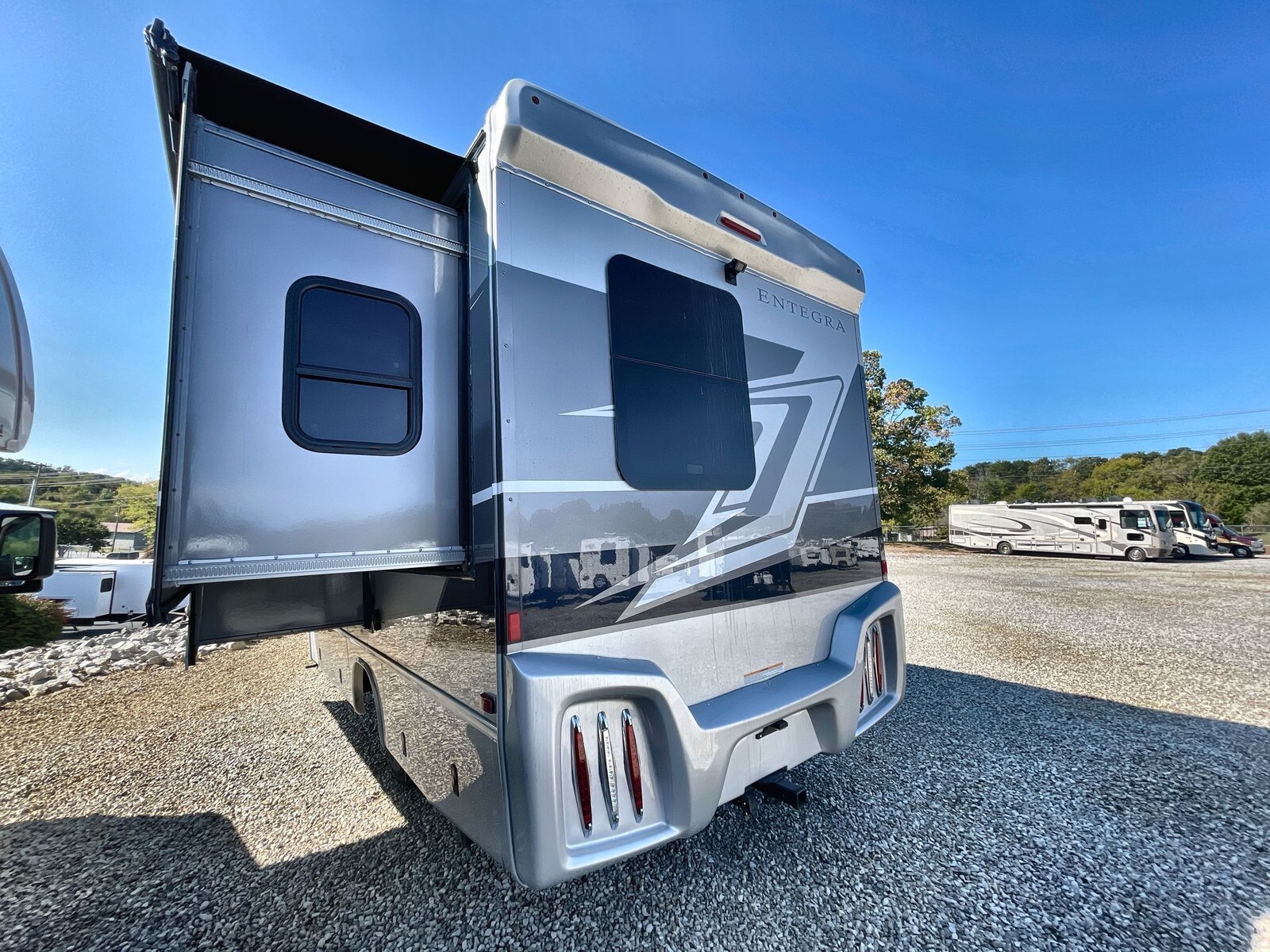 The 2025 Entegra Coach Qwest SE 24L is a Class C diesel motorhome that offers a comfortable and functional travel experience. Built on the reliable Mercedes-Benz Sprinter 3500 chassis, it features a 2.0-liter I4 diesel engine delivering 211 horsepower and 332 lb-ft of torque, paired with a 9-speed automatic transmission for smooth driving. Measuring 25 feet in length, 8 feet in width, and 11.42 feet in height, the 24L is easy to maneuver and park. Its aluminum body and fiberglass sidewalls ensure durability, while the 14-foot power retractable awning provides shade and outdoor comfort. Inside, the 24L accommodates up to six people with a queen-size bed, a convertible U-shaped dinette, and an overhead bunk. The kitchen is equipped with a two-burner cooktop, convection microwave, mid-size electric refrigerator, and solid-surface countertops. The living area includes comfortable seating and a high-definition LED TV with a premium