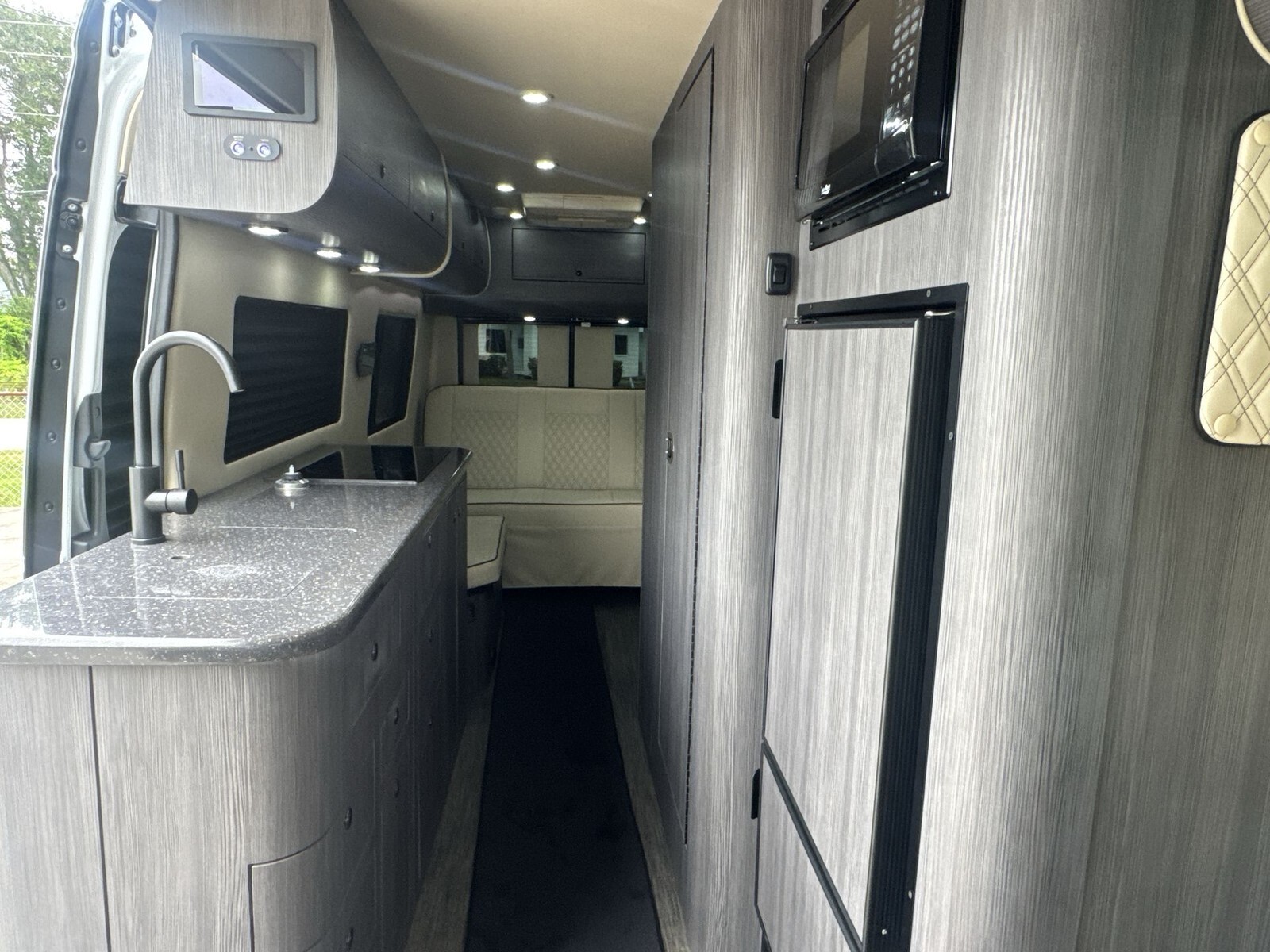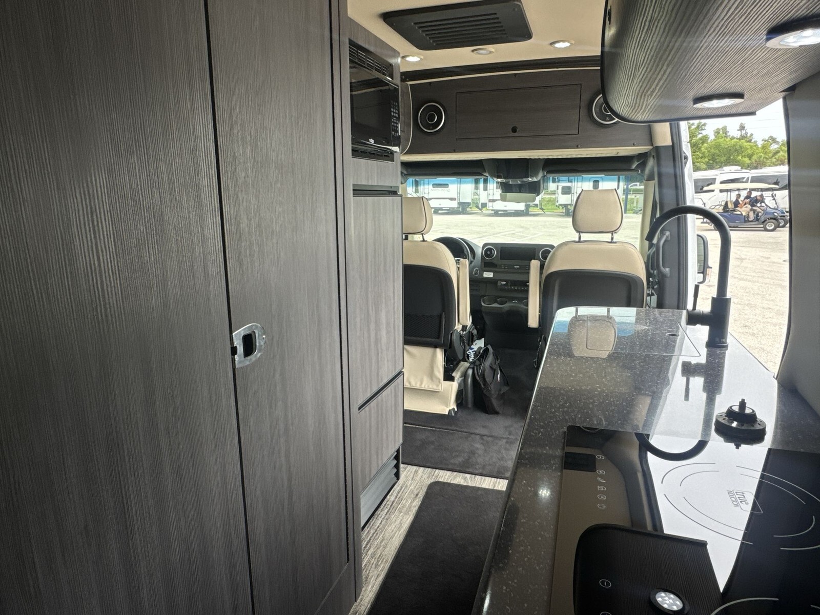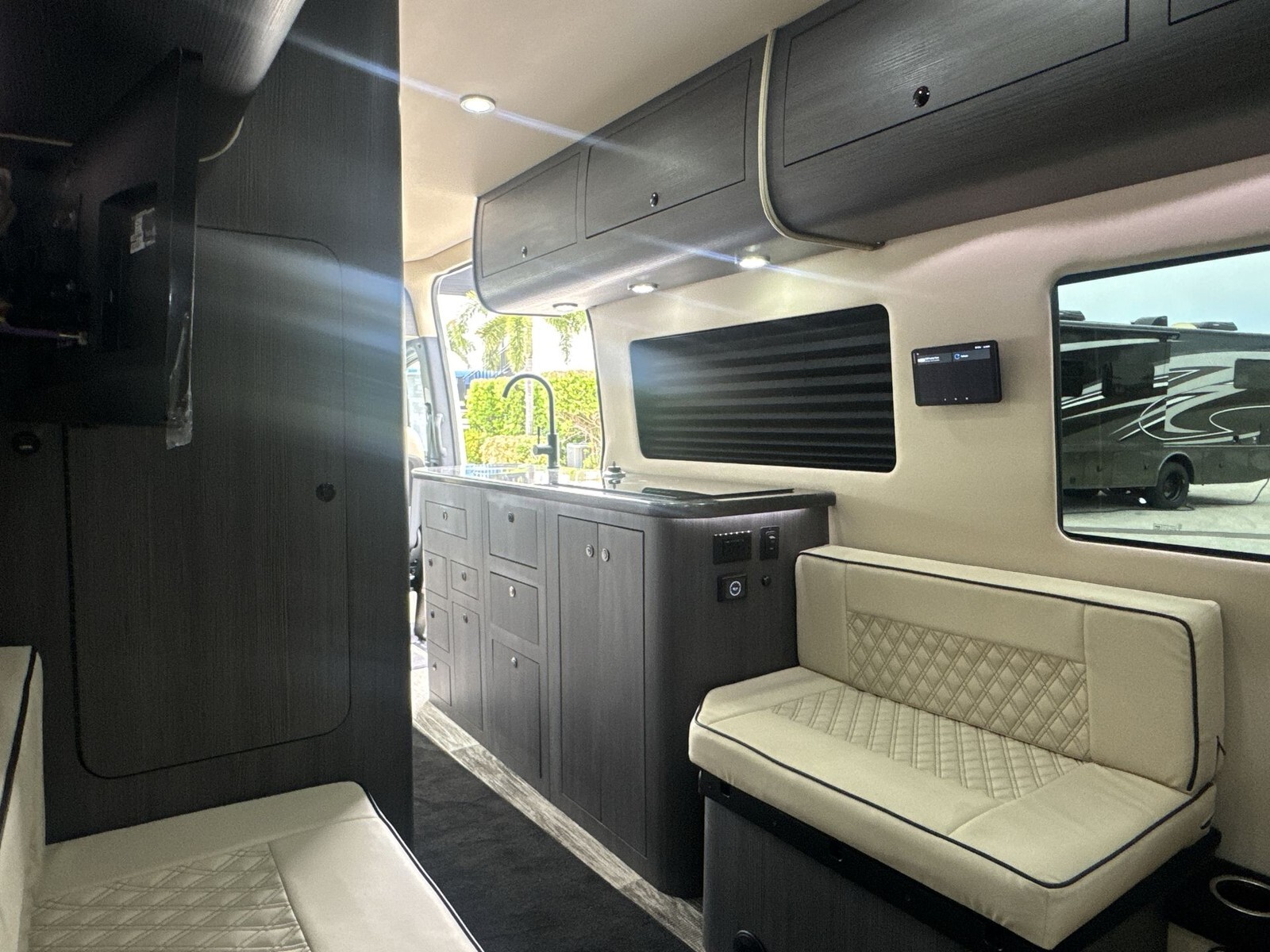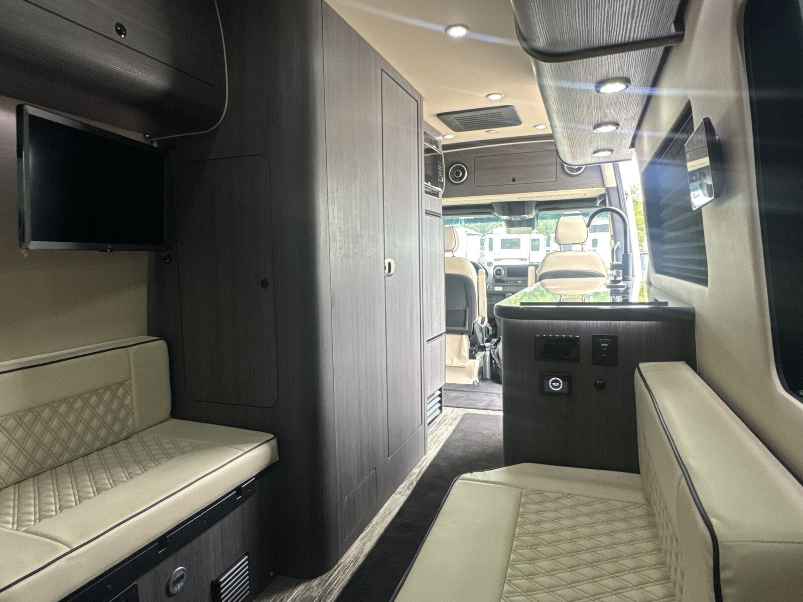 The 2025 Forest River OGV V-RV 5RL is a modern Class B diesel motorhome designed for travelers who value both adventure and comfort. Built on the dependable Mercedes-Benz Sprinter chassis, the 5RL provides a smooth and efficient driving experience, making it suitable for both short trips and extended journeys.The exterior of the 5RL features a contemporary design that enhances fuel efficiency and offers a stylish appearance. Its compact size allows for easy navigation through city streets and winding country roads. The durable construction and high-quality materials used in the exterior ensure longevity and resilience against various weather conditions.Inside, the 5RL is thoughtfully designed to maximize space and comfort. The rear lounge area includes plush seating that converts into a comfortable sleeping space for two, providing flexibility for both relaxation and rest. Large windows surround the living area, inviting