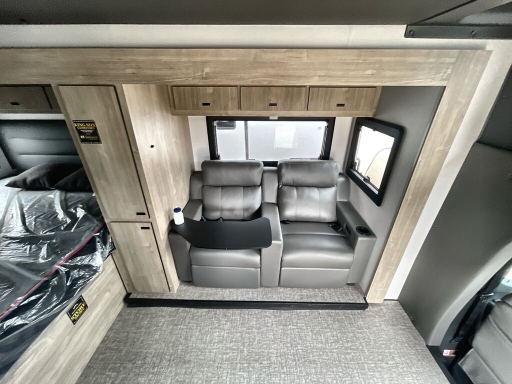 Introducing the 2025 Grand Design Lineage Series M 25FW, a Class C diesel motorhome designed to offer comfort and functionality for families and couples eager to explore the open road. Built on the reliable Mercedes-Benz Sprinter 4500 chassis, the 25FW is powered by a 2.0-liter I4 diesel engine delivering 208 horsepower and 332 lb-ft of torque, ensuring a smooth and efficient drive. The 9-speed automatic transmission enhances handling, making your travels enjoyable.Inside, the thoughtfully designed interior features a spacious living area with plush power theater seating, perfect for relaxation after a day of adventure. Large panoramic windows fill the space with natural light, connecting you to the outdoors while maintaining indoor comfort. The well-equipped kitchen includes modern appliances such as a two-burner stove, convection microwave, and a full-sized electric refrigerator, allowing you to prepare meals just like