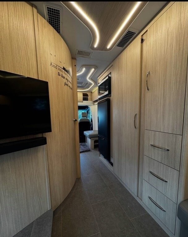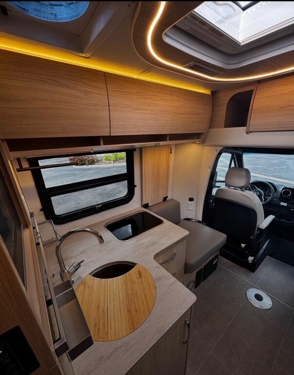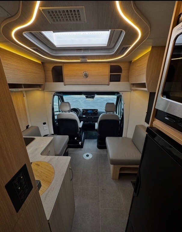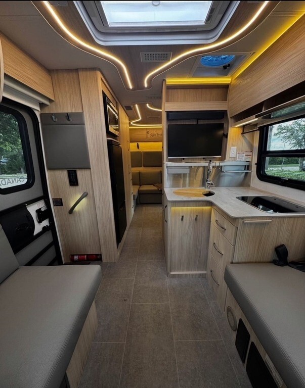 This Unity is powered by a Mercedes-Benz Turbocharged 2L engine and a 9-speed 9G-Tronic automatic transmission with only 1,000 miles. The overall length is 25.08 feet and it comes equipped with 1 power retractable awning, 1 A/C unit, a generator, solar panels, and plenty of room to sleep 4. This unit has been well-maintained.