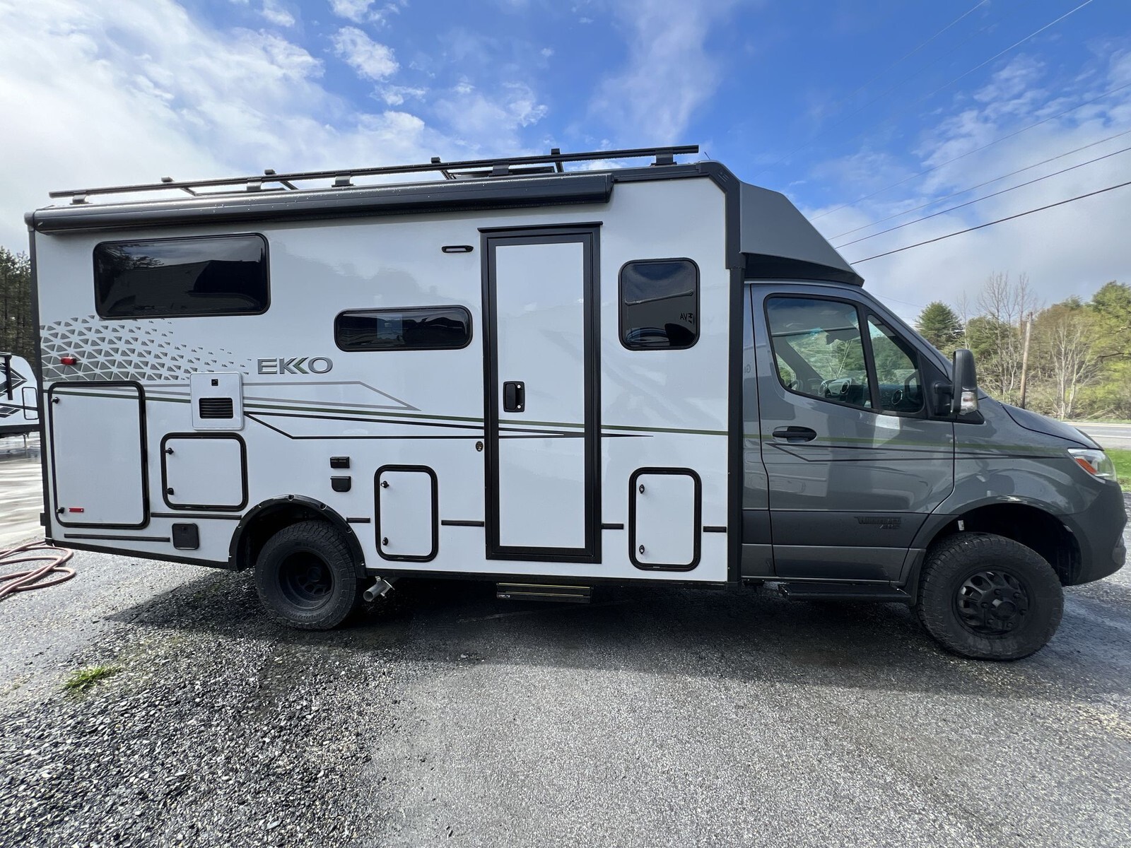 The 2025 Winnebago Ekko 23B is a Class C diesel motorhome designed to offer comfort and versatility for travelers. Built on the Mercedes-Benz Sprinter 3500 chassis, it features a 2.0L Turbo Diesel 4-cylinder engine with 208 horsepower and 332 lb-ft of torque, providing efficient performance. The all-wheel-drive system enhances stability across various terrains.