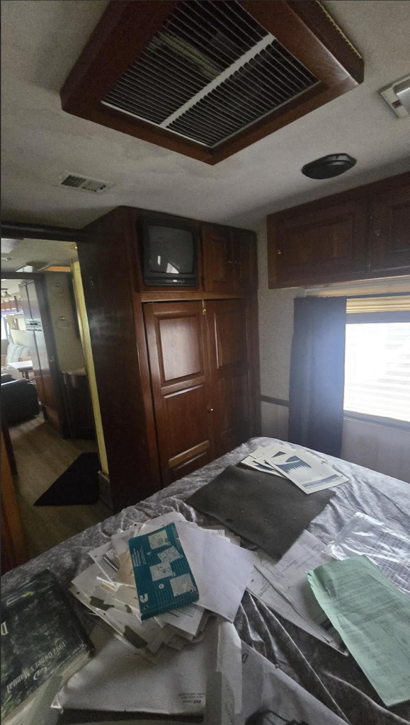 This coach runs and drives very well and benefits from a fiberglass roof, along with an impressive collection of owner manuals and maintenance records that speak to careful stewardship over the years. All four tires are new, with two currently mounted and two ready to be installed. As with many well-priced coaches of this vintage, there are a few items to note: two of the new tires still need mounting, the house and chassis batteries will need replacement, and the dash A/C motor requires repair.