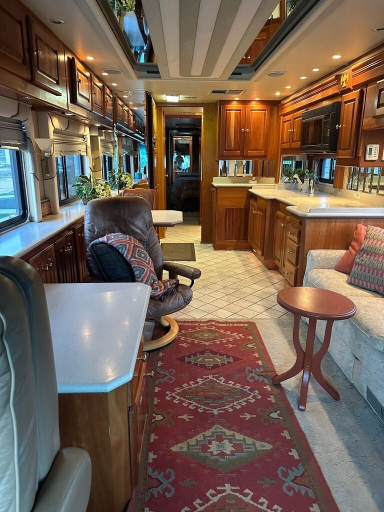Inside, youll find a spacious dual-slide floorplan that opens the living area for maximum comfort and livability. The interior features solid wood cabinetry, residential-style furnishings, and generous storage throughout. The well-equipped kitchen provides ample counter space and appliances for effortless meal prep, while the private bedroom offers a peaceful retreat with plenty of wardrobe space. A roomy bathroom, washer/dryer, and thoughtful storage make extended stays easy and comfortable. Outside, large pass-through storage bays, an onboard generator, and quality construction round out this luxury coach. If youre looking for a true high-end motorhome built to stand the test of time, this Monaco Executive 40DS is a must-see.
