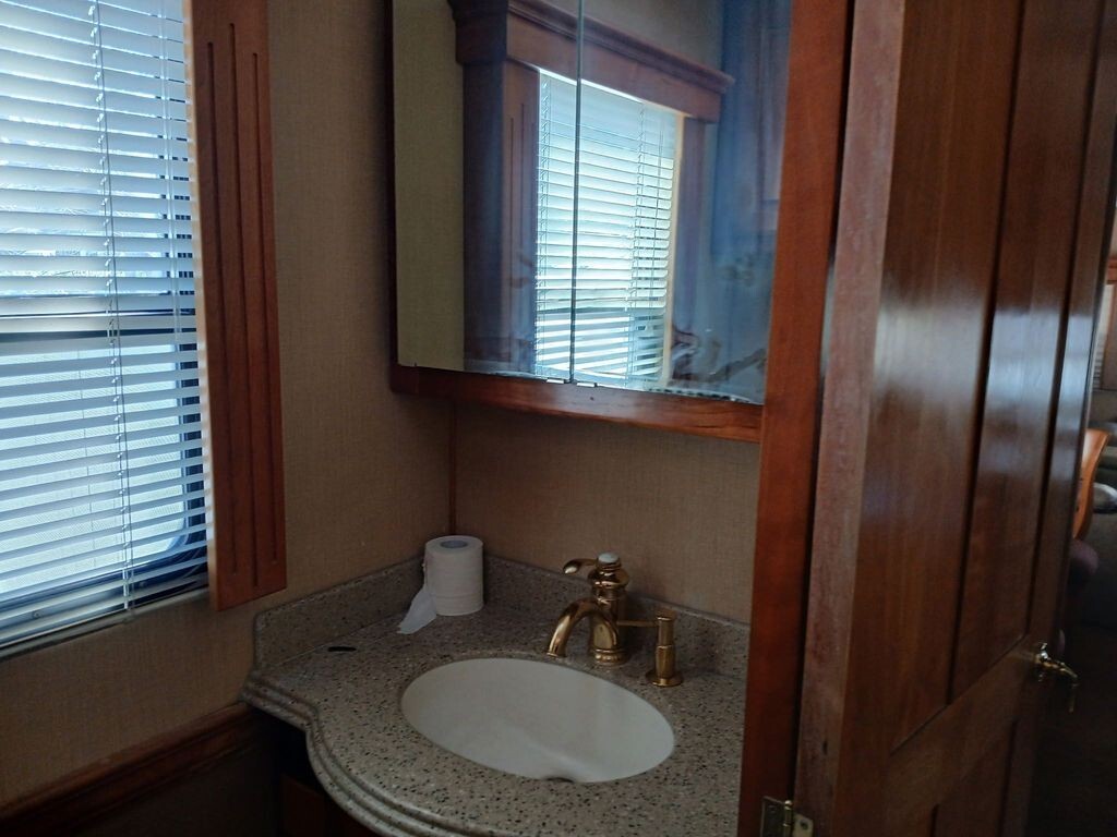 The bathroom area offers residential convenience with solid fixtures and plenty of room to move comfortably.