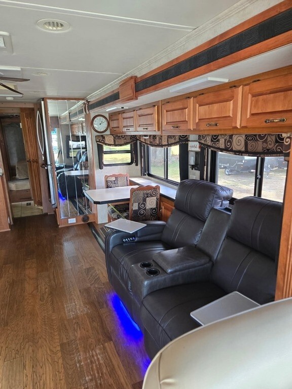 This Monaco is powered by an 8.3L Cummins diesel engine and a 6-speed automatic transmission with 78,000 miles. The overall length is 38.83 feet and comes equipped with 4 power-retractable slide-outs, 1 power awning, 2 A/C units, a diesel generator, and plenty of room to sleep 6. This unit has been well-maintained.