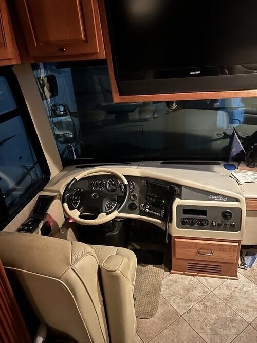 2008 Monaco Dynasty Yorkshire IV The 2008 Monaco Dynasty Yorkshire IV is a luxury Class A diesel motorhome that delivers an exceptional combination of performance, comfort, and high-end craftsmanship. a strong diesel engine, this coach is built for long-distance travel with confidence and reliability. The interior is designed with premium materials throughout, featuring plush seating, high-quality cabinetry, and an open floor plan enhanced by multiple slide-outs that significantly expand the living space. The gourmet kitchen is fully equipped with solid surface countertops, top-tier appliances, and abundant storage, making meal preparation both convenient and enjoyable. The master suite offers a comfortable king-sized bed along with ample wardrobe