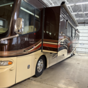 $1000’s worth of included accessories, 2 Tommy Bahama XL Jumbo Padded Club Chairs, 12ft outdoor rug patio mat, 4 x Technoflex hush pads for smooth stable leveling, front wheel chocks, 4 x wheel covers, spare engine fluids for ongoing journey and 100psi air compressor, 50amp & 30amp adaptors for shore power, 6ft ladder, New external 10Gal bbq propane tank + adaptor and more