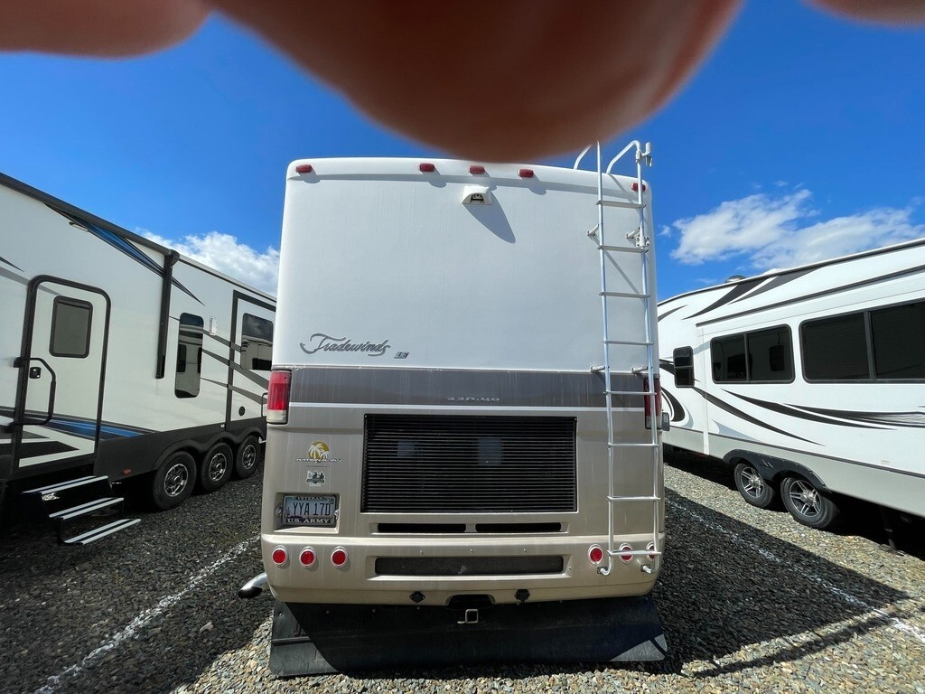 2002 National Tradewinds 35' Class A Motorhome This 2002 National Tradewinds Class A Motorhome is built on a Spartan chassis and powered by a dependable 325 HP Caterpillar diesel engine. Featuring two slide-outs and 300 watts of solar, it’s well-equipped for extended travel and off-grid living. Fuel storage includes 100 gallons of diesel and 50 gallons of propane, both full, while the domestic gas/electric fridge adds convenience. Recent upgrades include a power inverter, generator, porcelain toilet, new shocks, new roof air unit, and electric entry steps with stabilizer. Inside, you’ll find new furniture including a queen bed, low mileage on the coach, and a fresh oil change. With excellent tires, cold dash A/C, and modern feature