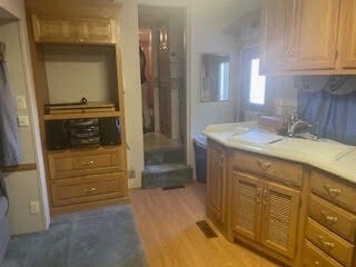 This 2001 Newmar Mountain Aire 34RDCK is a well-equipped 34-foot fifth wheel designed for comfort, convenience, and extended stays. It features two slide-outs that expand the living space, sleeping accommodations for three, and a thoughtfully designed floorplan with plenty of storage throughout. This unit comes loaded with extras, including new tires, new batteries, a spare tire, and a hitch stabilizer for smooth towing. It also includes an add-on screen room that attaches to the awning, perfect for relaxing outdoors. Other highlights include four 40 lb propane tanks, a stackable washer and dryer, a new awning, a full 5th wheel cover, and a Reese 20K quick-release hitch. Ample underneath storage ensures you’ll have room for all your travel essentials, and the 6,500-watt Onan propane generator provides reliable off-grid power. This Mountain Aire has been well cared for and is ready for its next adventure.