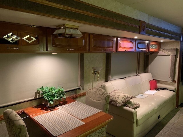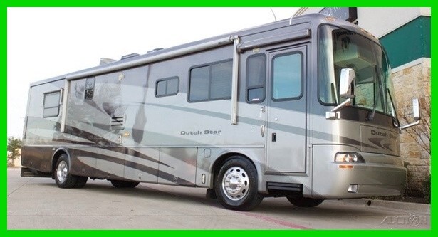 This Dutch Star sits on a Spartan Mountain Master Chassis, and is powered by a Cummins 370HP engine (1,385 hours) and an Allison 6-speed automatic transmission with 57,196 miles. The overall length is 38.5 feet and it comes equipped with 2 power retractable slide-outs, 3 retractable window awnings, 2 Fresh A/C units with heat pump, LP furnace, an 8kW generator with 1052 hours, and plenty of room to sleep 4. This unit has been well-maintained.