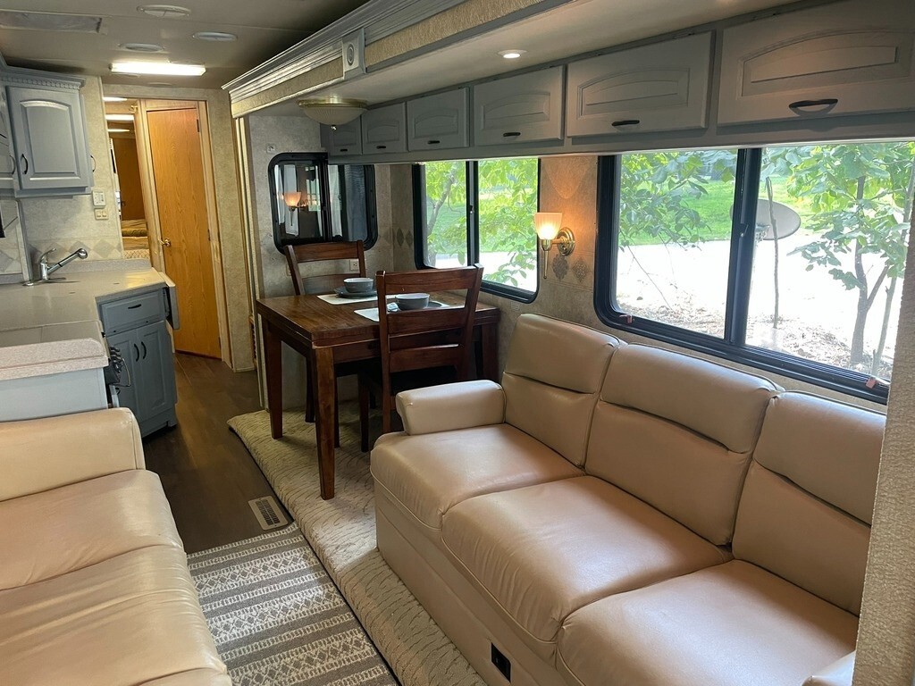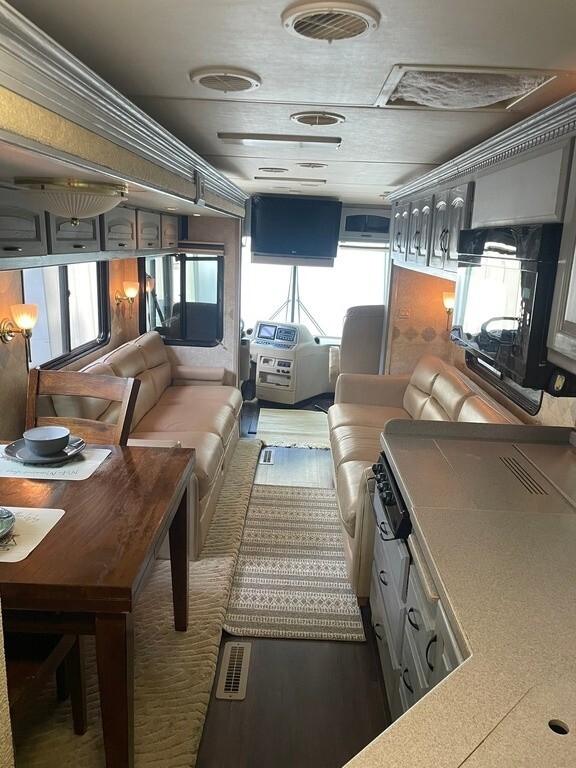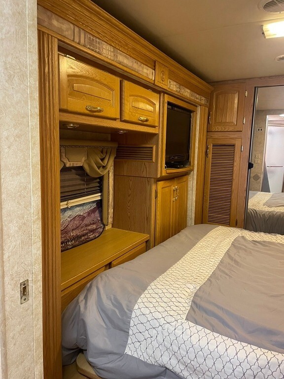 This Kountry Star is powered by a 330HP Cummins diesel engine and an automatic transmission with 69,600 miles. The overall length is 40 feet and it comes equipped with 4 power retractable slide-outs, 1 awning, 2 A/C units, a generator, and room to sleep up to 6. This unit has been well-maintained.