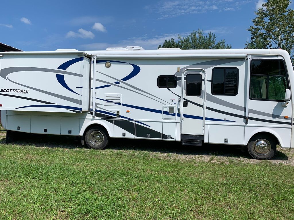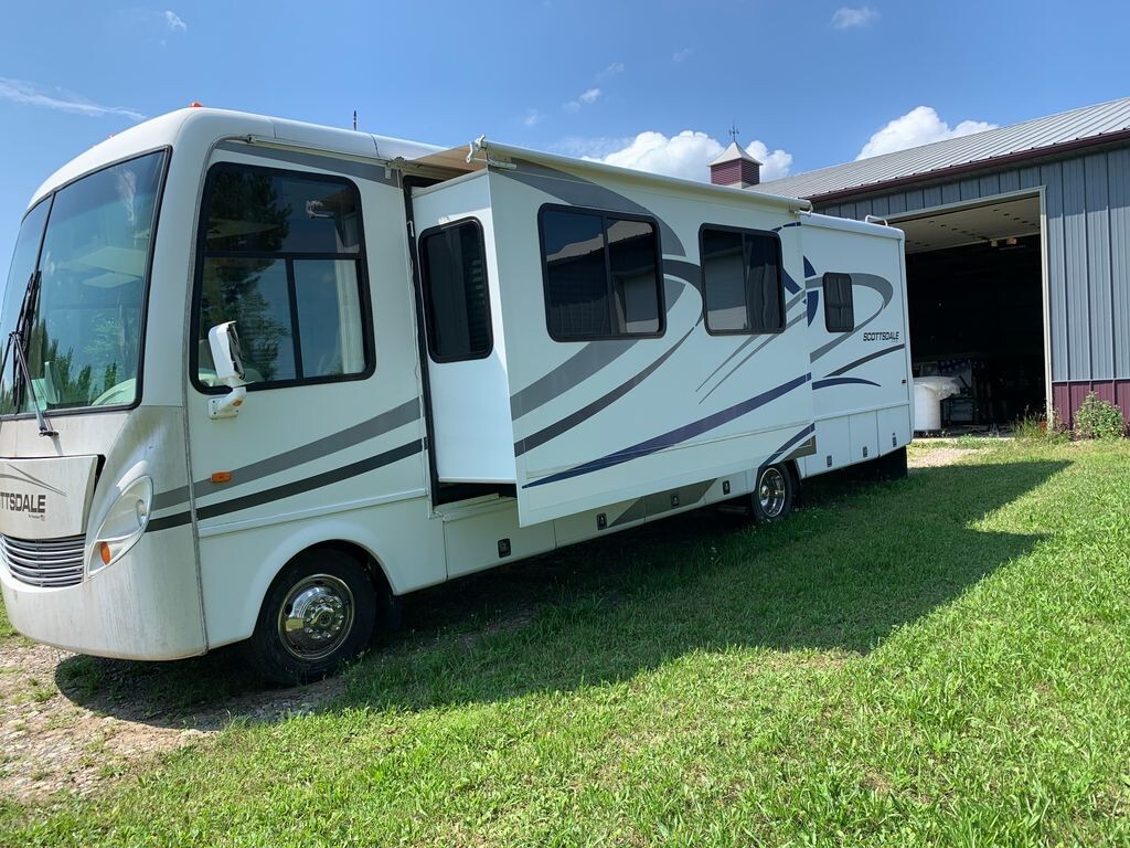 2006 Newmar Scottsdale 3303 34' Class A Motorhome. V10 6.8L 362HP Gasoline Engine. 2 Slide Outs with Toppers, Awning, Sleeps 8, 2 A/C Units, Auto Leveling System.