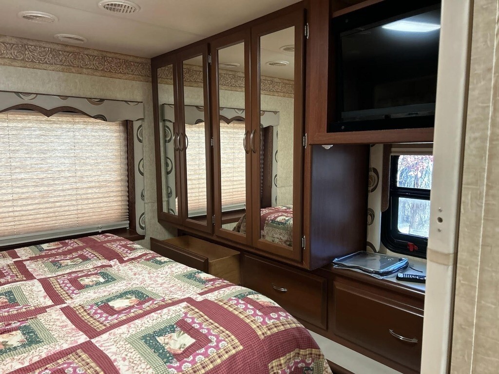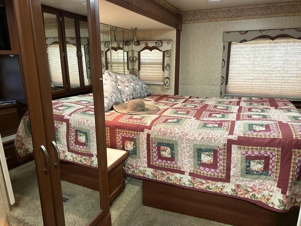 This Newmar is powered by a 6.7L Ford V10 engine and a 6-speed automatic transmission with 59,000 miles. The overall length is 32 feet and it comes equipped with 2 power retractable slide-outs, 1 power retractable awning, 2 A/C units, a 5500 Onan generator, and plenty of room to sleep 4. This unit has been well-maintained.