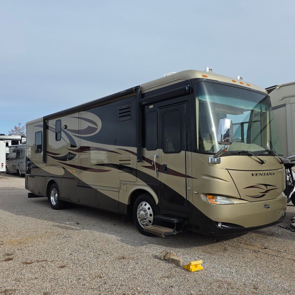 2009 Newmar Ventana 3430 34' 6" Class A Diesel Motorhome, Cummins Engine 350 HP. 3 Slide Outs With Toppers, 2 Awnings, Sleeps 6, 2 AC Units.