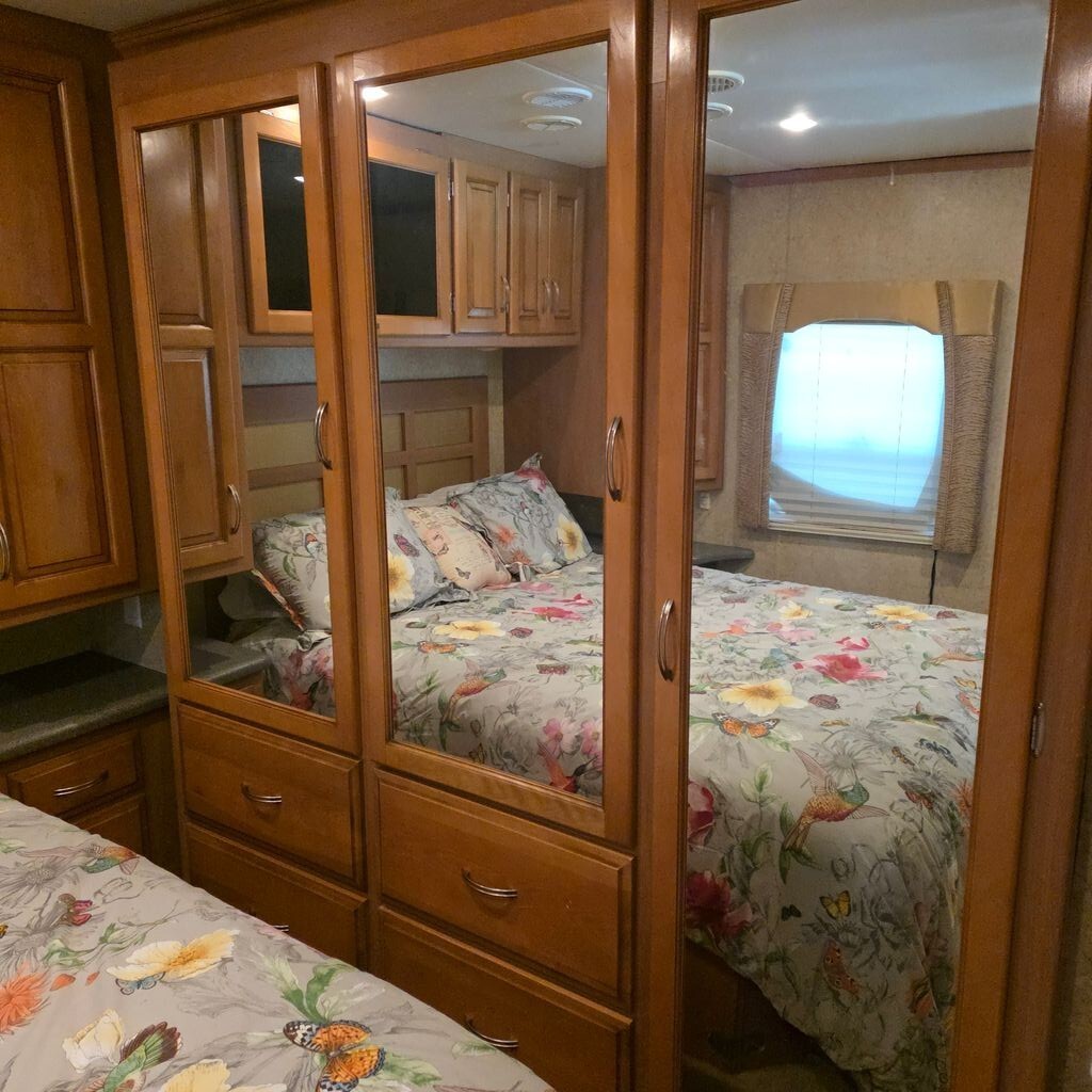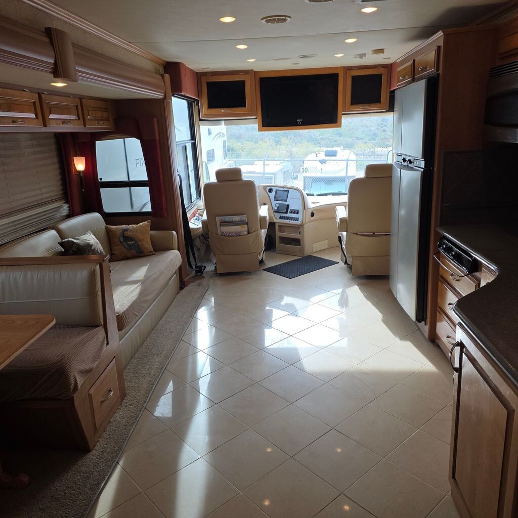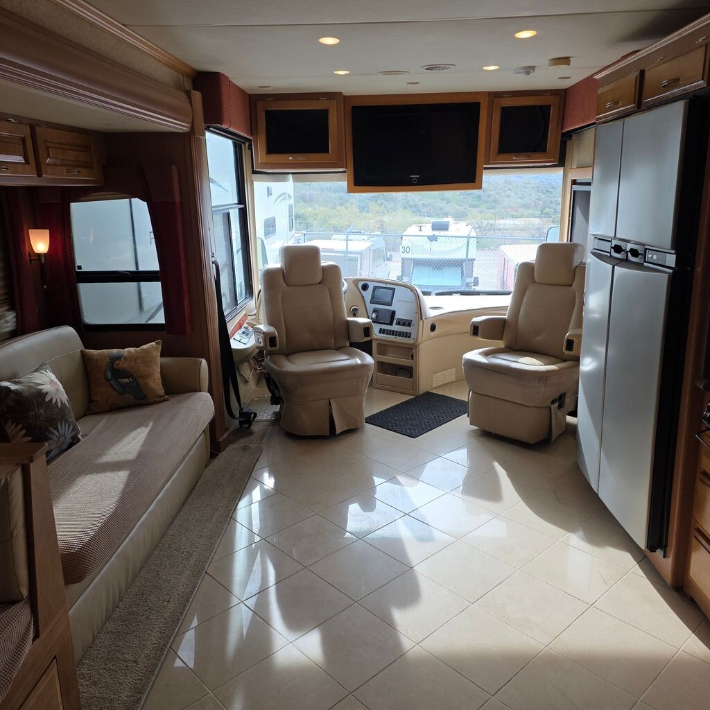 The cockpit is thoughtfully equipped with swivel captains chairs, heated mirrors, and a color backup and side-view camera system for easy maneuvering. Modern entertainment upgrades include Bluetooth stereo integration and an HDMI receiver with surround sound.