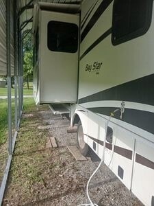 This Bay Star is powered by a 6.8L Triton V10 engine and an automatic transmission with 35,000 miles. The overall length is 29.83 feet, and it comes equipped with 2 power retractable slide-outs, 1 power retractable awning, 2 A/C units, a generator, and plenty of room to sleep 6. This unit has been well-maintained.