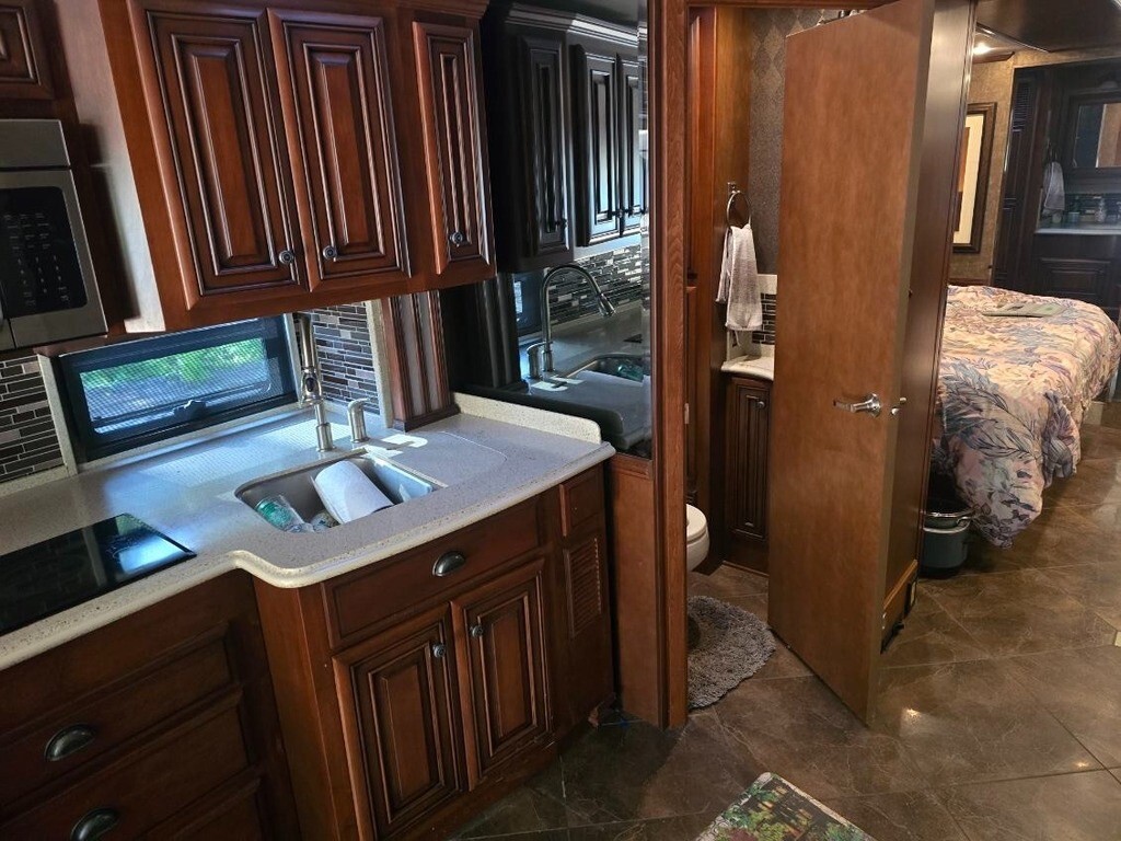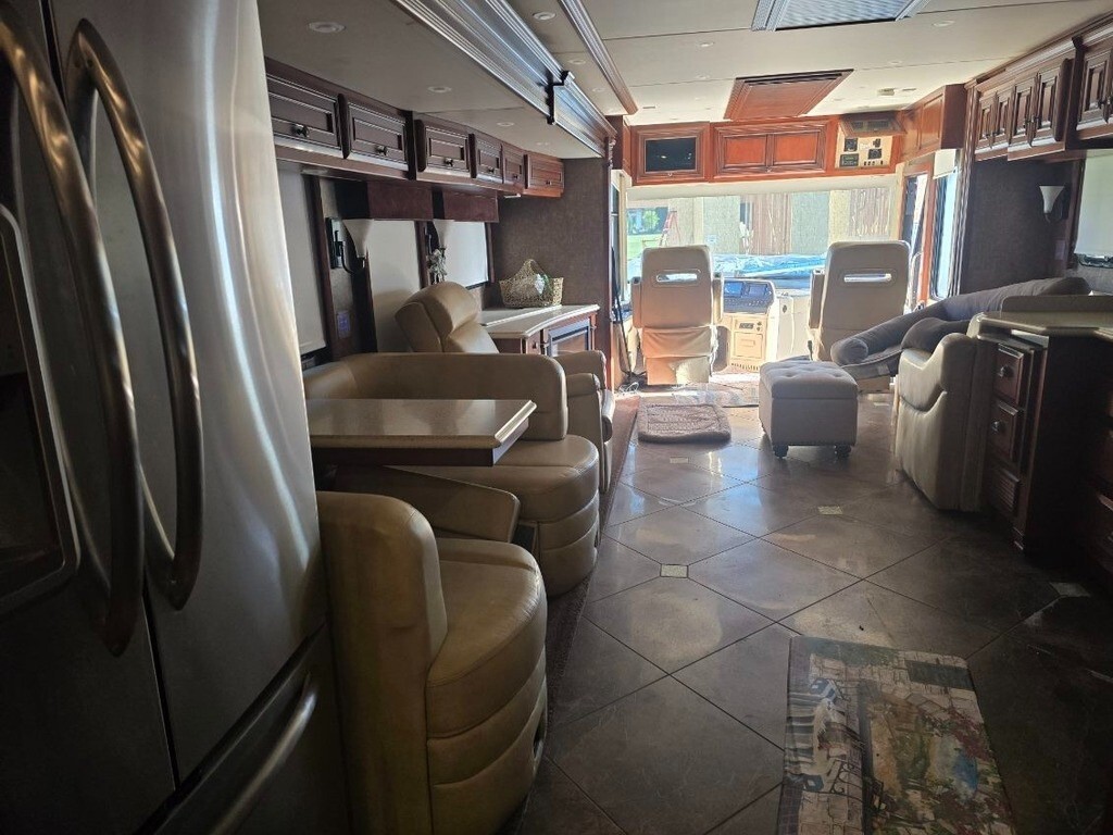 - Exterior: Full Body Custom Paint, Auto HWH Leveling System, Three Slide Outs, Two Power Awnings, Air Horns, Fog and Docking Lights, Electric Step
