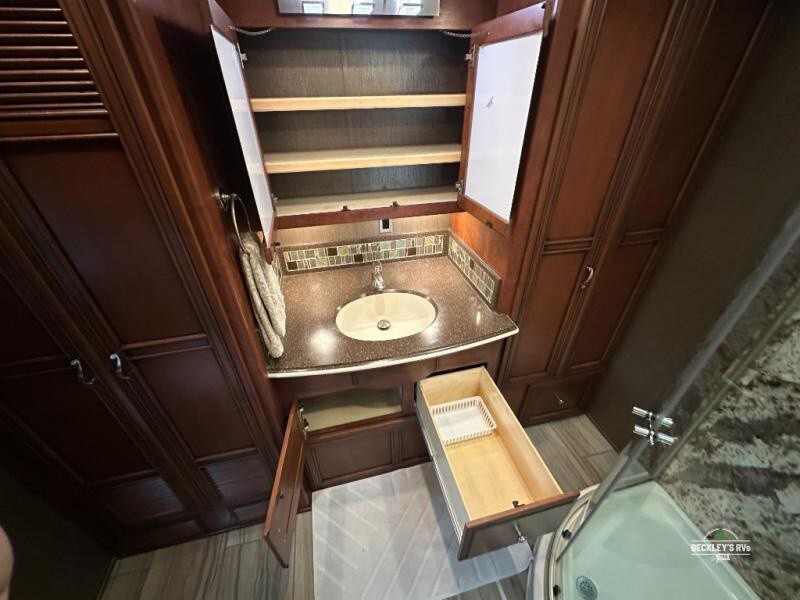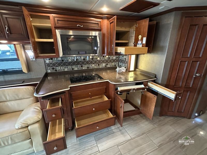 There are plenty of overhead cabinets throughout the motor home. You can even choose an optional washer and dryer.