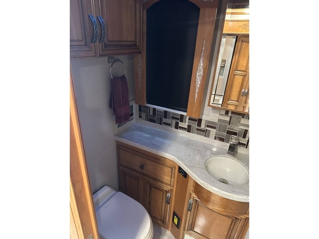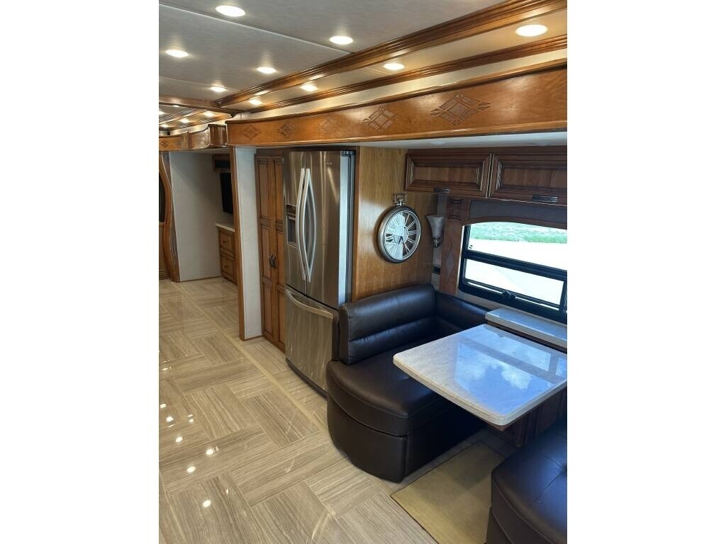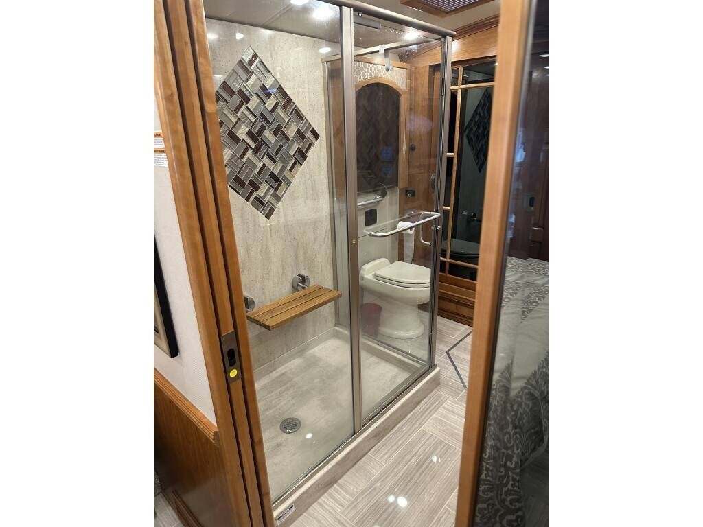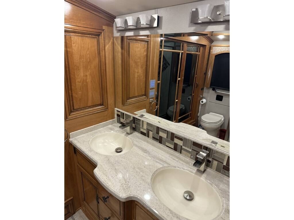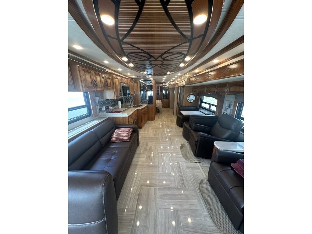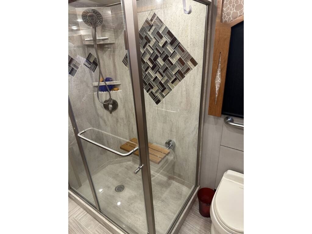 “This 2018 Newmar London Aire 4531 is a luxury Class A diesel coach that offers high-end comfort, style, and functionality for full-time living or extended travel. It’s smoke-free and pet-free, meticulously maintained, and packed with upscale features throughout. Inside, you’ll find a spacious layout with 1½ baths, including a private master bath featuring a double sink vanity, glass-enclosed shower with a seat, and top-tier finishes. The master suite offers a king bed, stackable washer and dryer, and generous closet space. The residential refrigerator, dishwasher, pantry, and ample storage throughout the coach make it feel like home, while the central vacuum system adds everyday convenience. Outside, enjoy your favorite shows on the outdoor TV or keep drinks cold and easily accessible in the slide-out cooler tray—perfect for entertaining at the campsite. For anyone looking for a well-equipped, luxurious diesel pusher that’s ready for the road, this London Aire 4531 is it. Comfort, style, and performance all come together in this beautiful, top-of-the-line coach.”