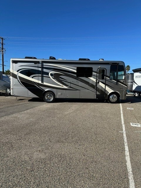 2019 Newmar Bay Star 3014 Class A RV For Sale in Hemet, CA 92545 This Newmar is powered by a 6.8L V10 engine and a 6-speed automatic transmission with 34,000 miles. The overall length is 30.92 feet, and it comes equipped with 2 power-retractable slide-outs, 1 power awning, 2 A/C units with heat pumps, an Onan generator, and room to sleep up to 7. This unit has been well-maintained. Kitchen/Living Area Features 3-Burner Stove/Oven Overhead Fan Microwave Full-Size Fridge/Freezer Sink & Faucet Pantry/Storage Space Booth Dinette