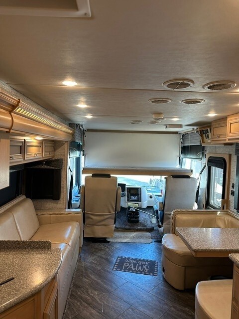 This Newmar is powered by a 6.8L V10 engine and a 6-speed automatic transmission with 34,000 miles. The overall length is 30.92 feet, and it comes equipped with 2 power-retractable slide-outs, 1 power awning, 2 A/C units with heat pumps, an Onan generator, and room to sleep up to 7. This unit has been well-maintained.