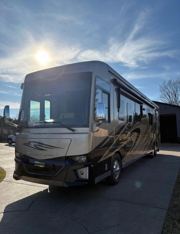 This 2019 Newmar Dutch Star 4362 Class A Motorhome is a luxury diesel pusher that has been exceptionally cared for and maintained, with everything on the coach in excellent working order. It has been stored indoors in a climate-controlled environment, helping preserve both its mechanical systems and interior finishes. The coach features three slide-outs, heated marble floors, and walk-in showers, offering true residential comfort for extended travel. Additional highlights include three roof air-conditioning units with heat pumps, flat-screen TVs, DVD, and a premium sound system throughout. It is equipped with Comfort Drive technology, power-adjustable captain’s chairs, and power awnings with wind sensors for effortless driving and setup. Power is supplied by a Cummins generator with 1,218 hours of operation. The DEF system has been removed, and the coach rides on new tires, making this Dutch Star a well-appointed, high-end motorhome ready for luxury travel.