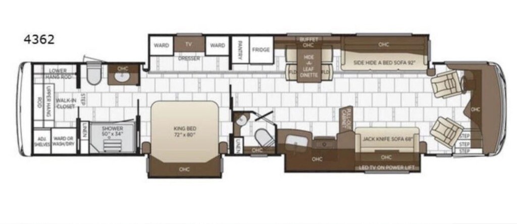 - Technology: GPS, Backup/Side cameras, Satellite Dish (Direct TV ready), and Home Theater Sound System