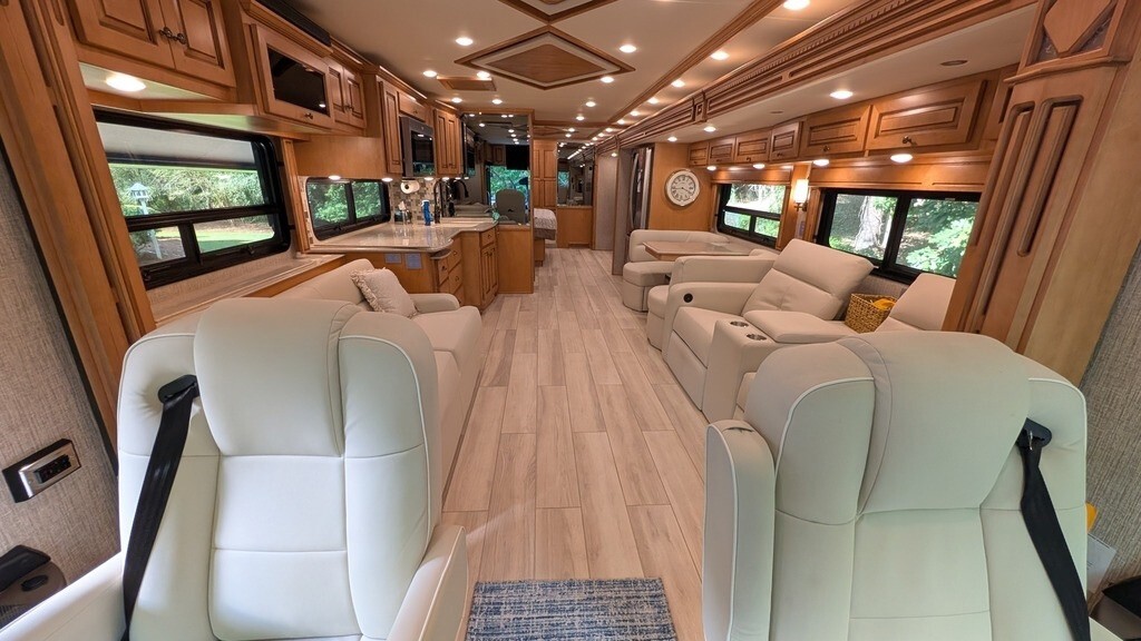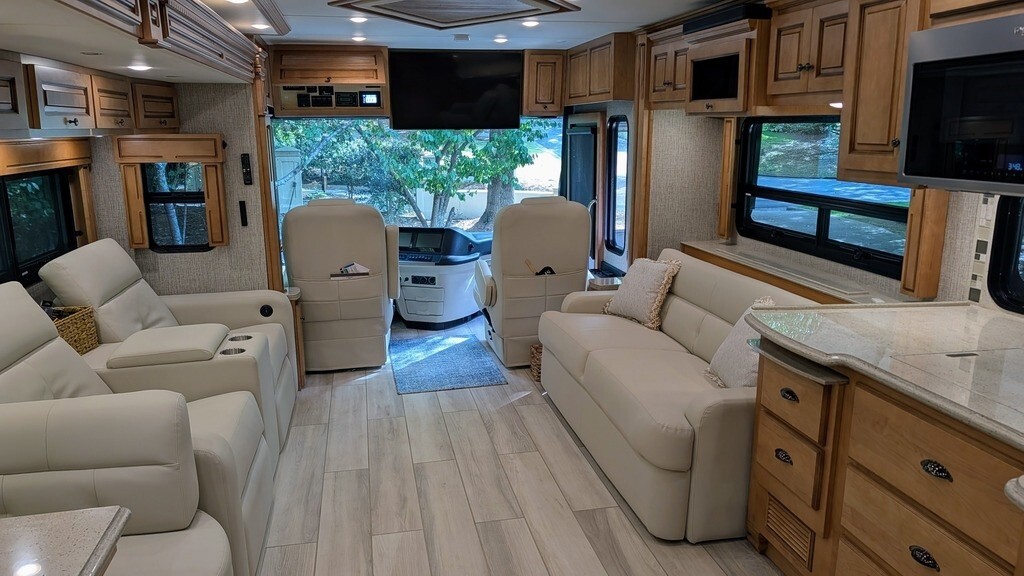 2022 Newmar Dutch Star 4369 Class A Diesel Pusher RV for Sale in Rome, GA 30161 This Dutch Star is powered by a8.9LI6Cumminsdiesel paired with a Allison 6-speed automatic transmission with overdrive and only 17,500 miles. The overall length is 43 feet and it comes equipped with 3 power retractable slide-outs with toppers, 1 power retractable awning, 3 A/C units, a 10kW generator, and plenty of room to sleep 4. This unit has been well-maintained. Kitchen Area Features 3-Burner Stove/Oven Overhead Fan Stainless Steel Microwave Whirlpool Residential Fridge/F
