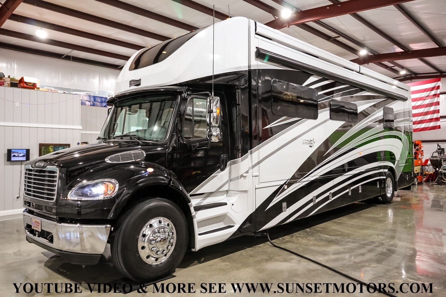 See WWW SUNSETMOTORS DOT COM for more photos and a walk around YouTube video, Clean Carfax, 2022 top of the line Newmar Superstar 4061 Super C Motor Home Ultimate luxury workhorse, Special Order color full body paint, Belmont Decor, Maple glazed solid wood cabinets, 360 HP Cummins Diesel with 6 speed Allison transmission, Exhaust Brake, Engine Brake, Only 16k Miles, Come's with 1 year Platinum warrant, Class first Full independent Cab air ride for incredible smooth ride, Rear air suspension, M2 106 Freightliner double C wall Chassis, 341 Wheelbase, Incredible 20,000 LBS Towing package with air electric brake hook up, 60,000 Lbs GCWR!!, Air seats with lumbar support and heat, Full wall slide out and exclusive step free aisleway more space than you can imagine in a Class C, Automatic hydraulic leveling system, All electric coach, Oasis Chinook Dual loop Hydronic system for unlimited hot water and coach heat, 8KW Onan Diesel generator with