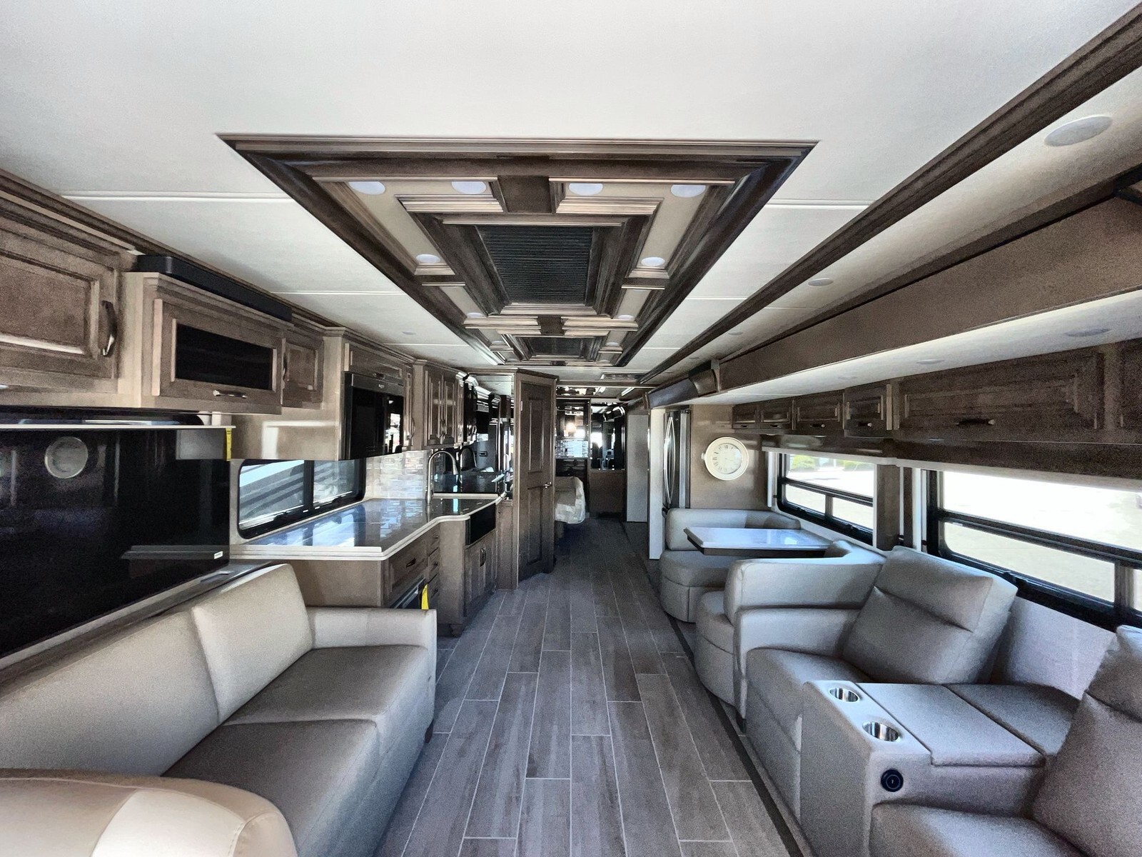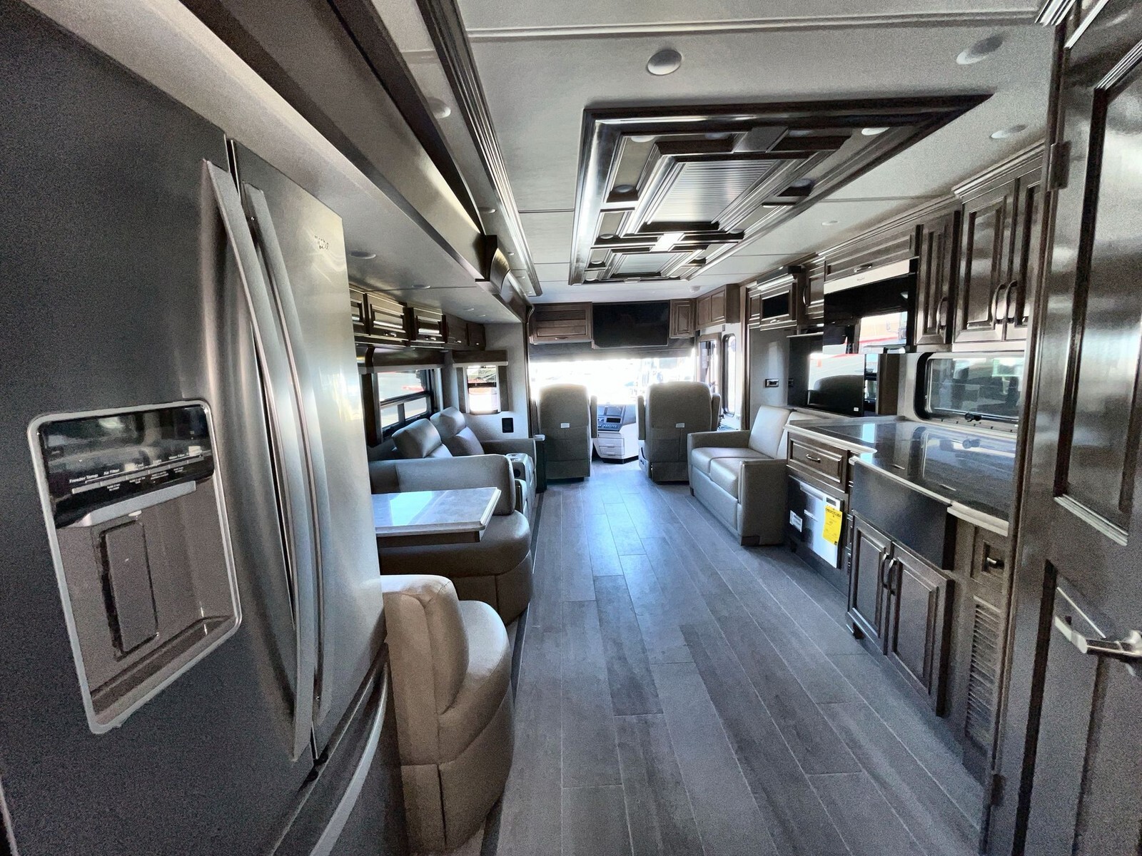 The 2025 Newmar Dutch Star 3836 is a luxurious Class A diesel motorhome designed for travelers seeking comfort and style on the open road. Built on a sturdy Freightliner XC-Series chassis and powered by a 450-horsepower Cummins I6 diesel engine, the 3836 offers a smooth and reliable driving experience. Measuring approximately 38.92 feet in length, the 3836 features full-body paint that enhances its visual appeal and provides protection against the elements. The motorhome includes three power-retractable slideouts, expanding the living space to create a roomy and inviting interior. Inside, the 3836 boasts high-quality furnishings and finishes. The kitchen is equipped with solid surface countertops, a full-size electric refrigerator, a convection microwave oven, and a two-burner stove, making meal preparation convenient. The living area offers plush leather seating, including two sofas, and a large LED TV with a
