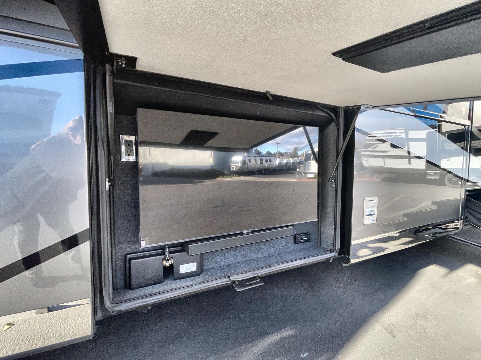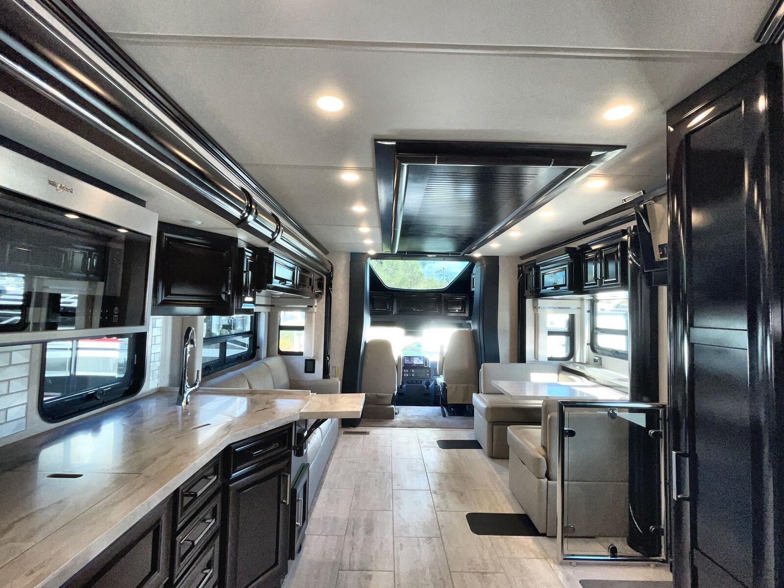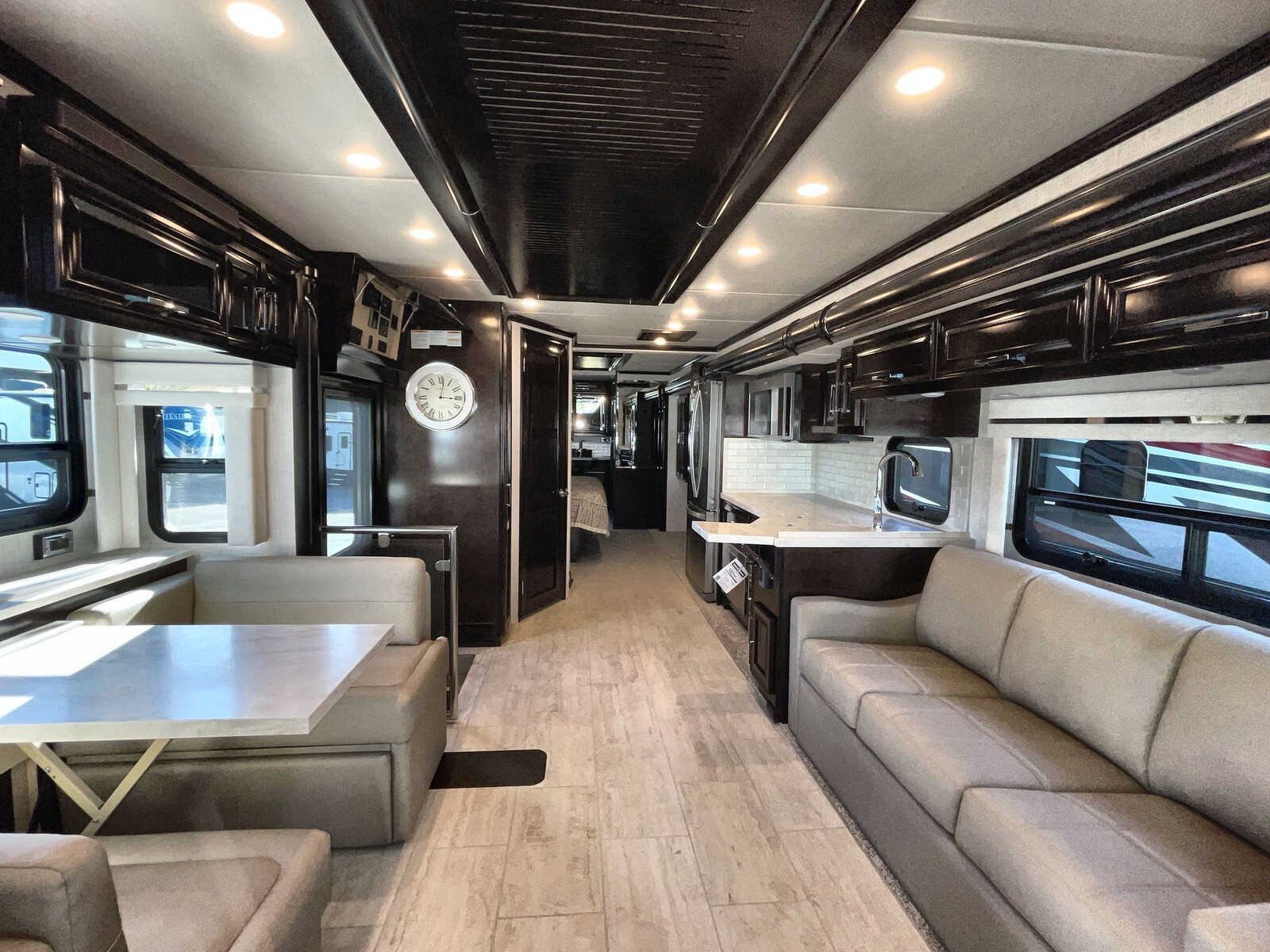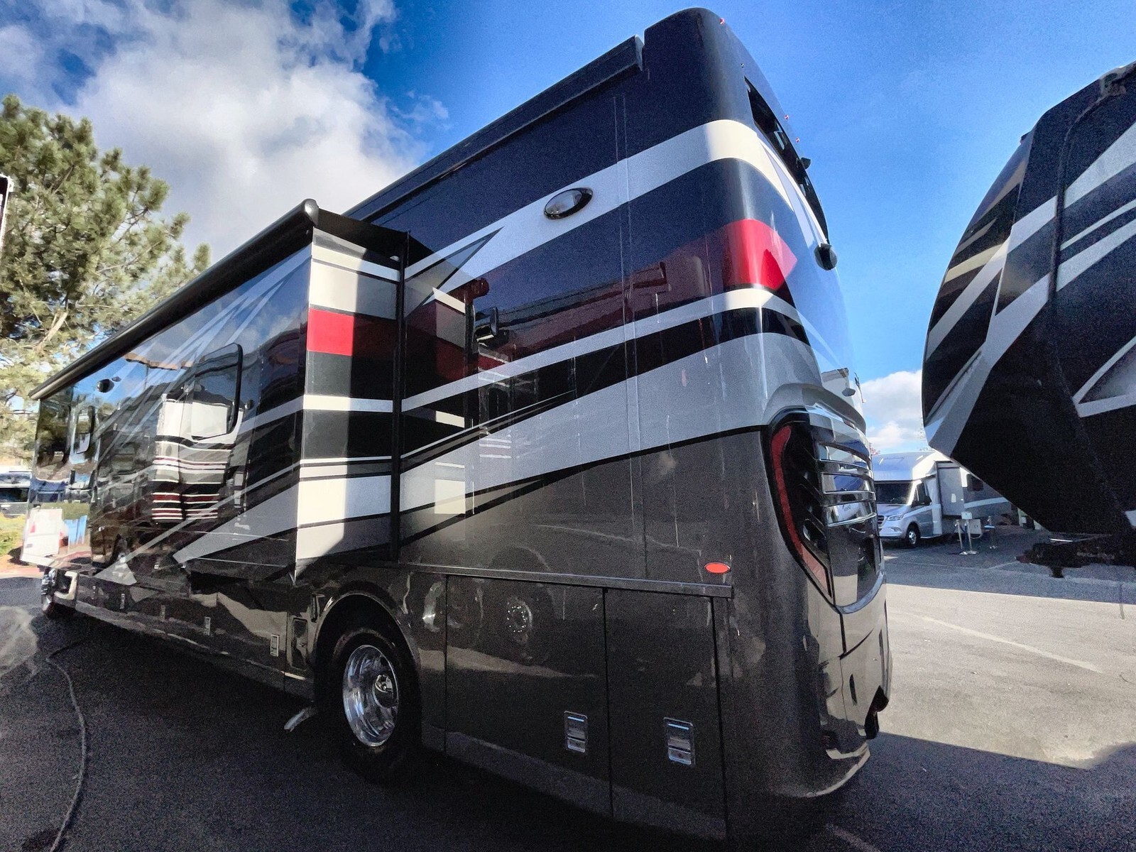 The exterior boasts Newmar's exclusive full-paint Masterpiece Finish", available in eye-catching designs like Gale Force, Gauntlet, and Peppercorn, ensuring a striking presence on the road. Measuring approximately 40.92 feet in length, 8.46 feet in width, and 13 feet in height, this motorhome offers ample space for all your adventures.