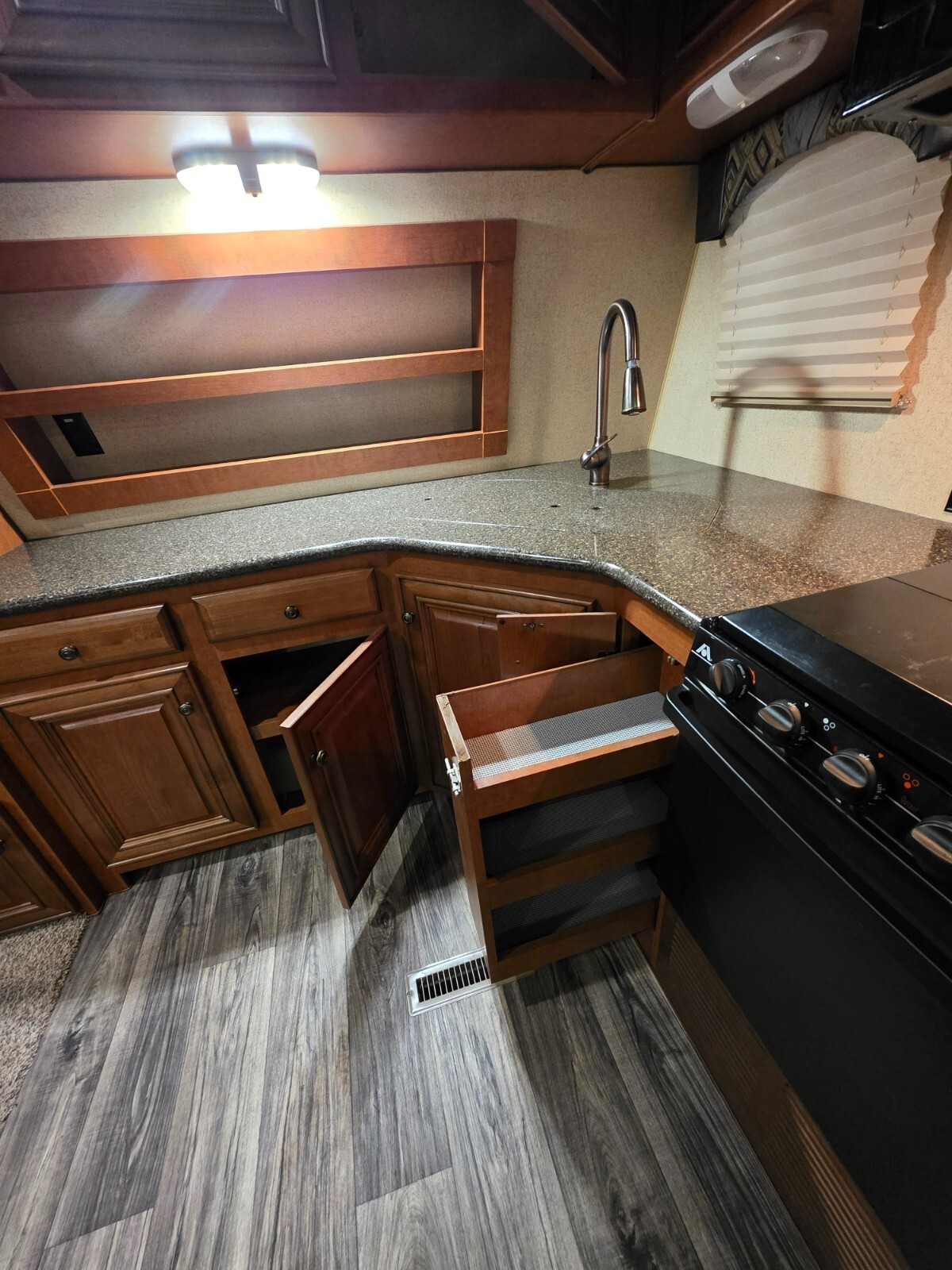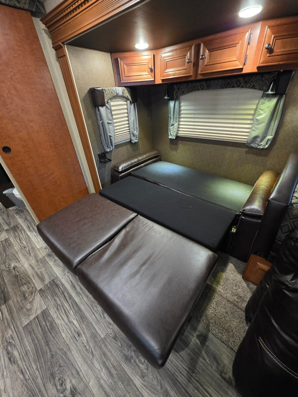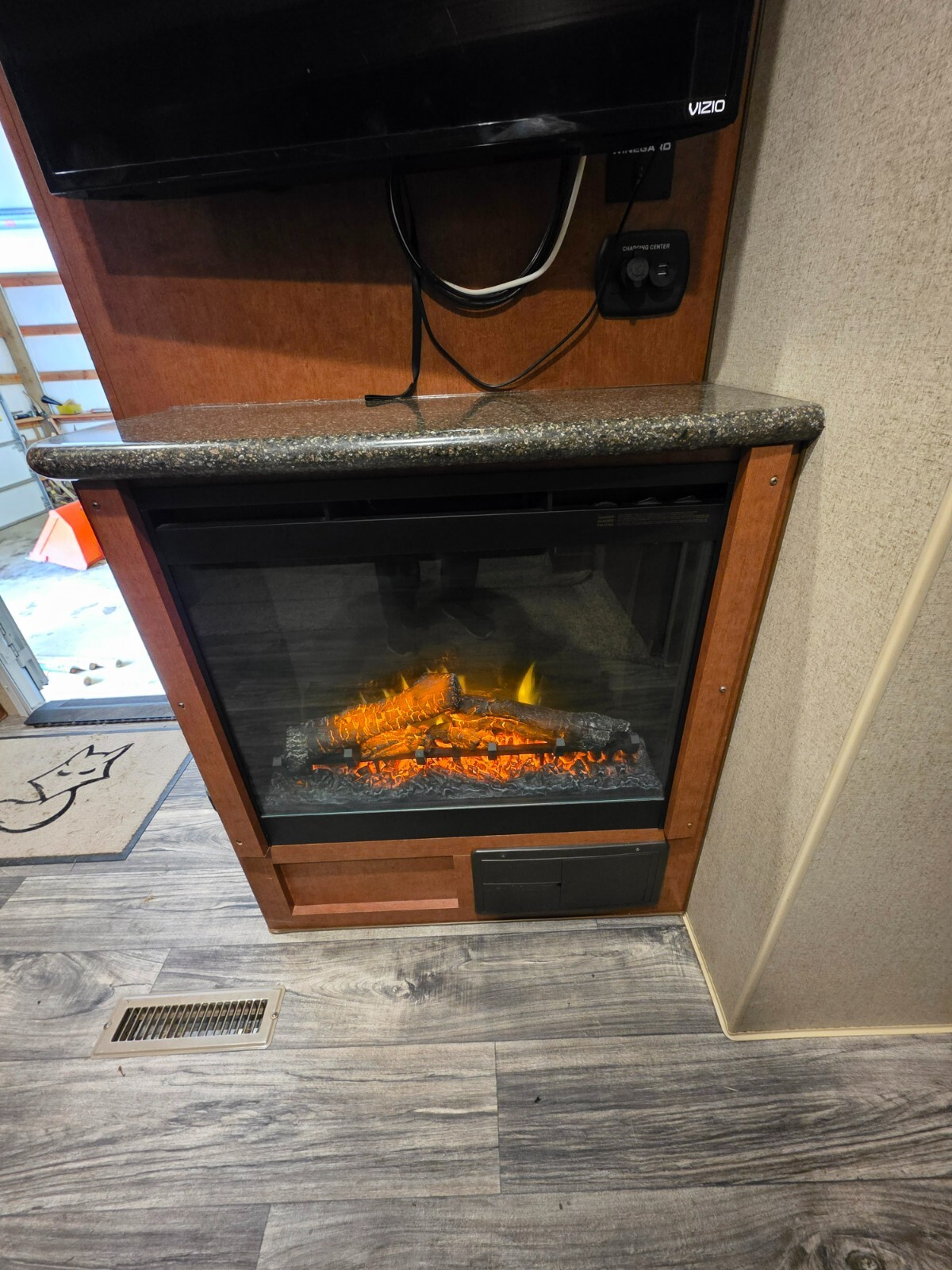 Upgrades we had installed after purchase include fireplace, bedroom entry door window replaced with slim-shade, upgraded front steps with handrail, keyless entry, Dual LP tank monitor system, Roof mount wifi booster, upgraded Andersen RV levelers, upgraded tow bar.