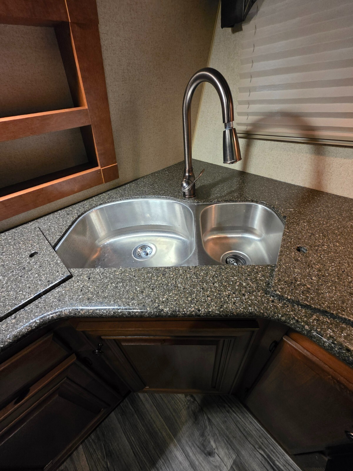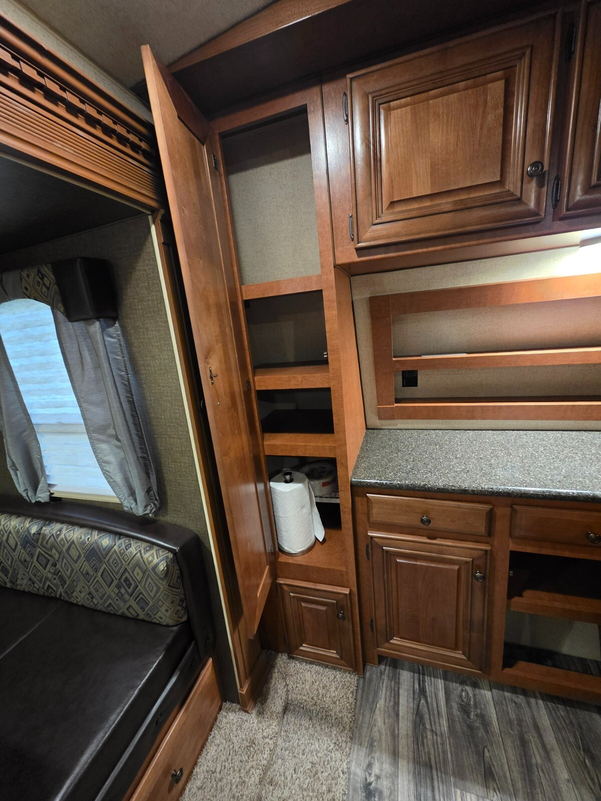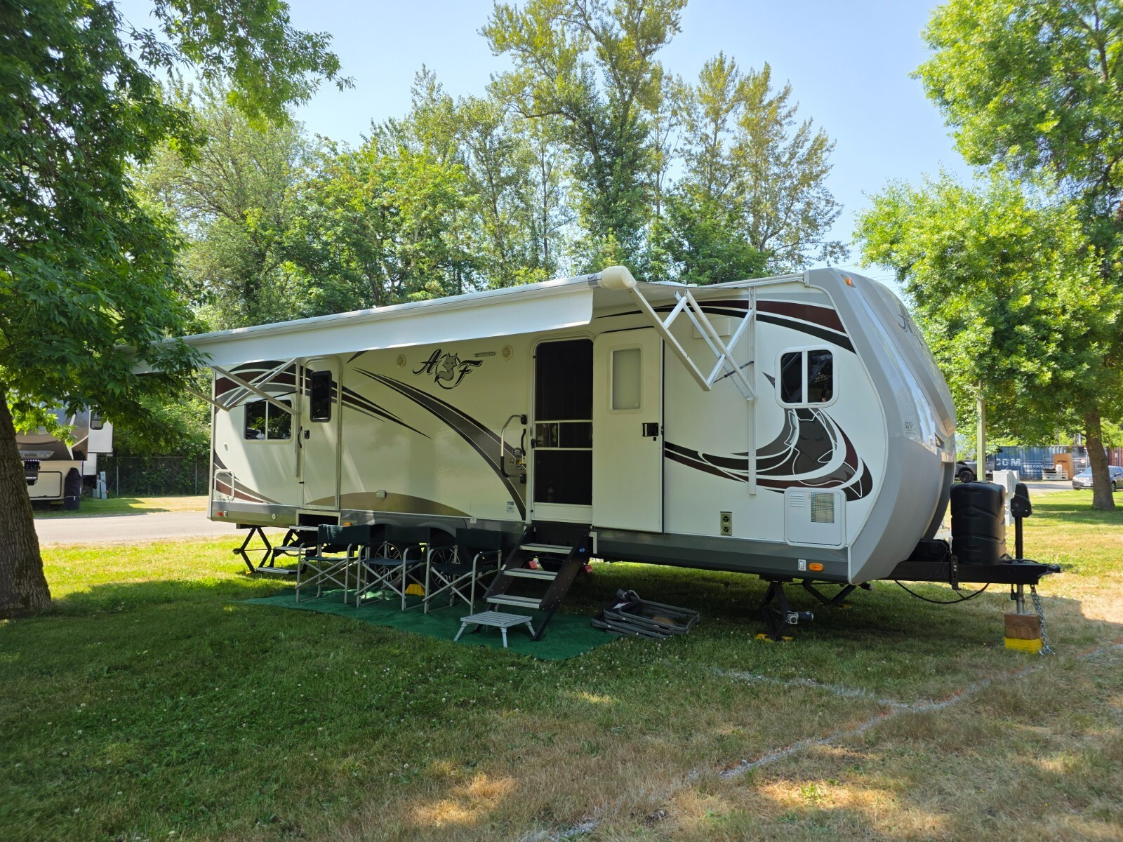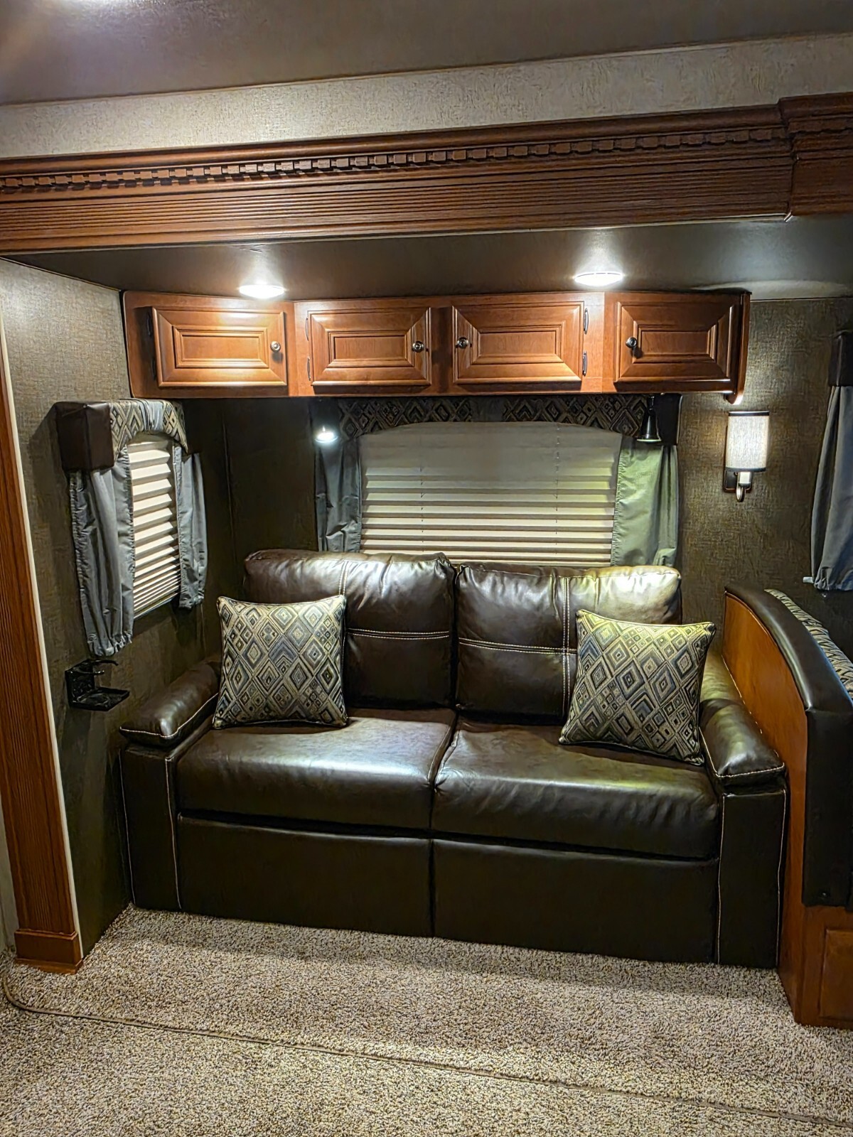 Upgrades we had installed after purchase include fireplace, bedroom entry door window replaced with slim-shade, upgraded front steps with handrail, keyless entry, Dual LP tank monitor system, Roof mount wifi booster, upgraded Andersen RV levelers, upgraded tow bar.