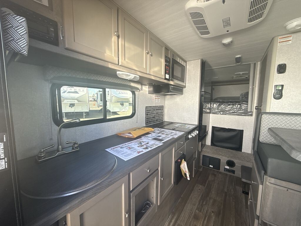 Inside the 890-LB, you'll find an efficiently arranged interior that maximizes space and functionality. The front features a comfortable 58" x 80" queen-size bed, providing a