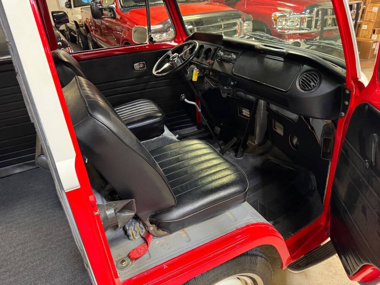 FULLY RESTORED BY CUSTOM CAR BUILDER OUT OF SANTA CLARITA. CA, FINISHED IN A RED/WHITE PAINT. POWERED BY A STOCK 4 CYLINDER 1600CC ENGINE WITH A 4 SPEED MANUAL TRANSMISSION. CUSTOM 2.5 INCH DROP SPINDLES FROM WAGONWEST GIVING THE VAN THE PERFECT RIDE HEIGHT. FOR MORE INFORMATION PLEASE CALL 713-463-8000