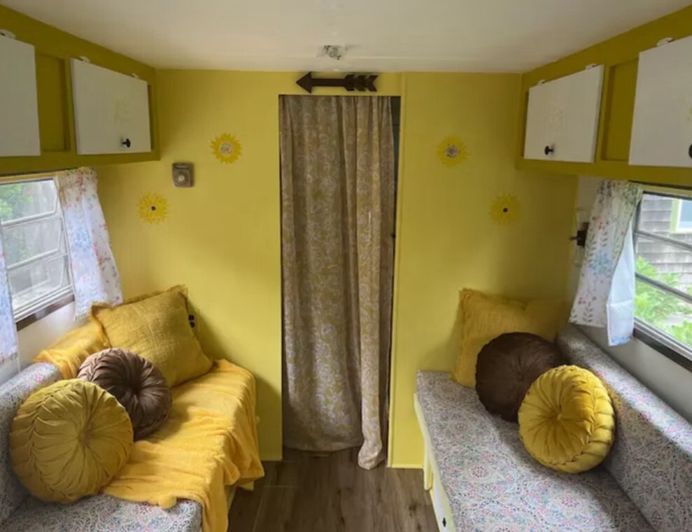 Typical wear and tear but overall very good condition. No leaks. New fridge. New window AC unit. Gas disconnected and have never used the heater which could need attention. Never tried it. BATHROOM FIXTURES HAVE BEEN REMOVED. Plumbing for sink, shower and toilet are still there though. Two couches pull out to larger beds. Kitchen table drops to a bed. Original stove in great condition.
