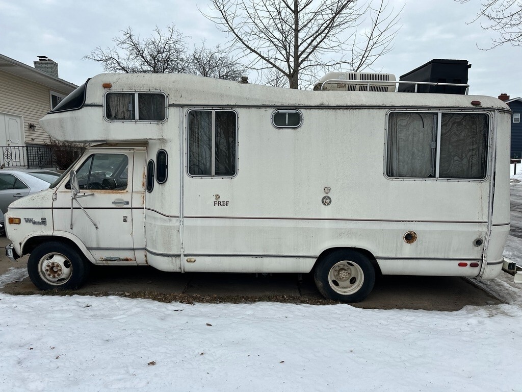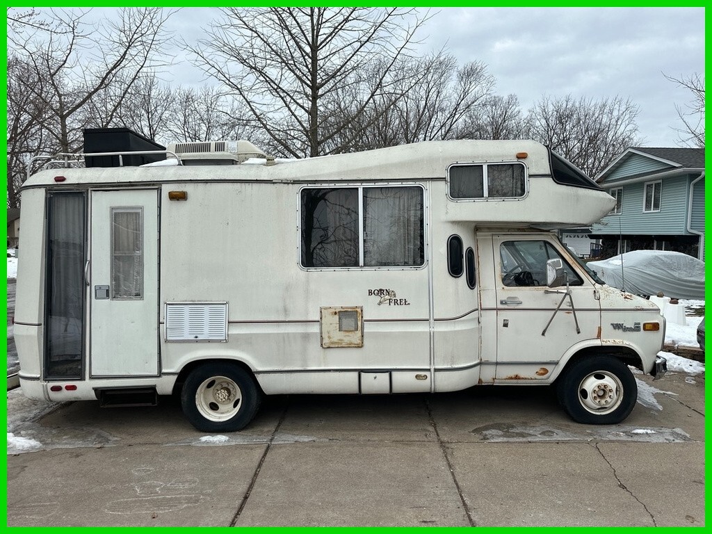 1979 Chevrolet Born Free Class C Motorhome Very Low Mileage Only 20K Location: Saint Paul, MN 55119 Description: 1979 Chevrolet Born Free Class C motorhome with 20,682 miles showing on the odometer. The RV did start previously but stopped running and currently does not start. It was last moved in 2023. The owner reports it ran well when operational. A new carburetor and fuel pump/filter were installed, but the work was not completed as the mechanic did not return to finish starting it afterward. Fuel type is gas. Brakes are reported to be in good condition and tires are in