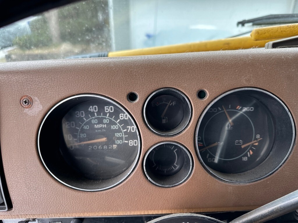 1979 Chevrolet Born Free Class C motorhome with 20,682 miles showing on the odometer.