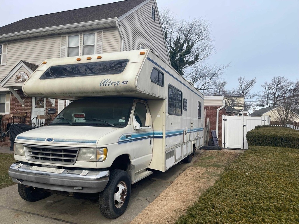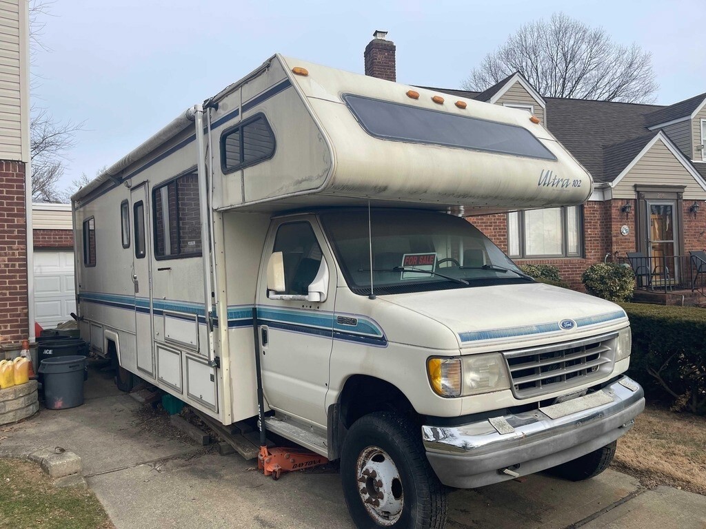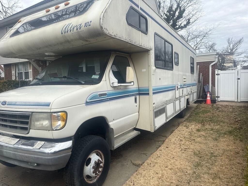 1994 Ford Gulfstream Ultra 102 XJ 29’ Class A Motorhome Sleeps many people Location: New Hyde Park, NY 11040 This 1994 Ford Gulfstream Ultra 102 XJ Class A motorhome has been maintained with solid floor and good roof condition. It has a big bed plus 4 additional pull out/converter beds including the couches & table. However, it will require transmission work before it can be driven. Also has a working generator. Vehicle Overview •Year: 1994 •Make: Ford •Model: Gulfstream Ultra 102 •Trim: XJ (per VIN/door sticker)