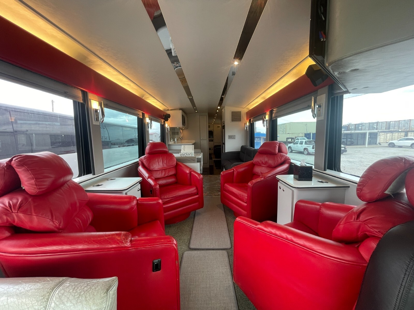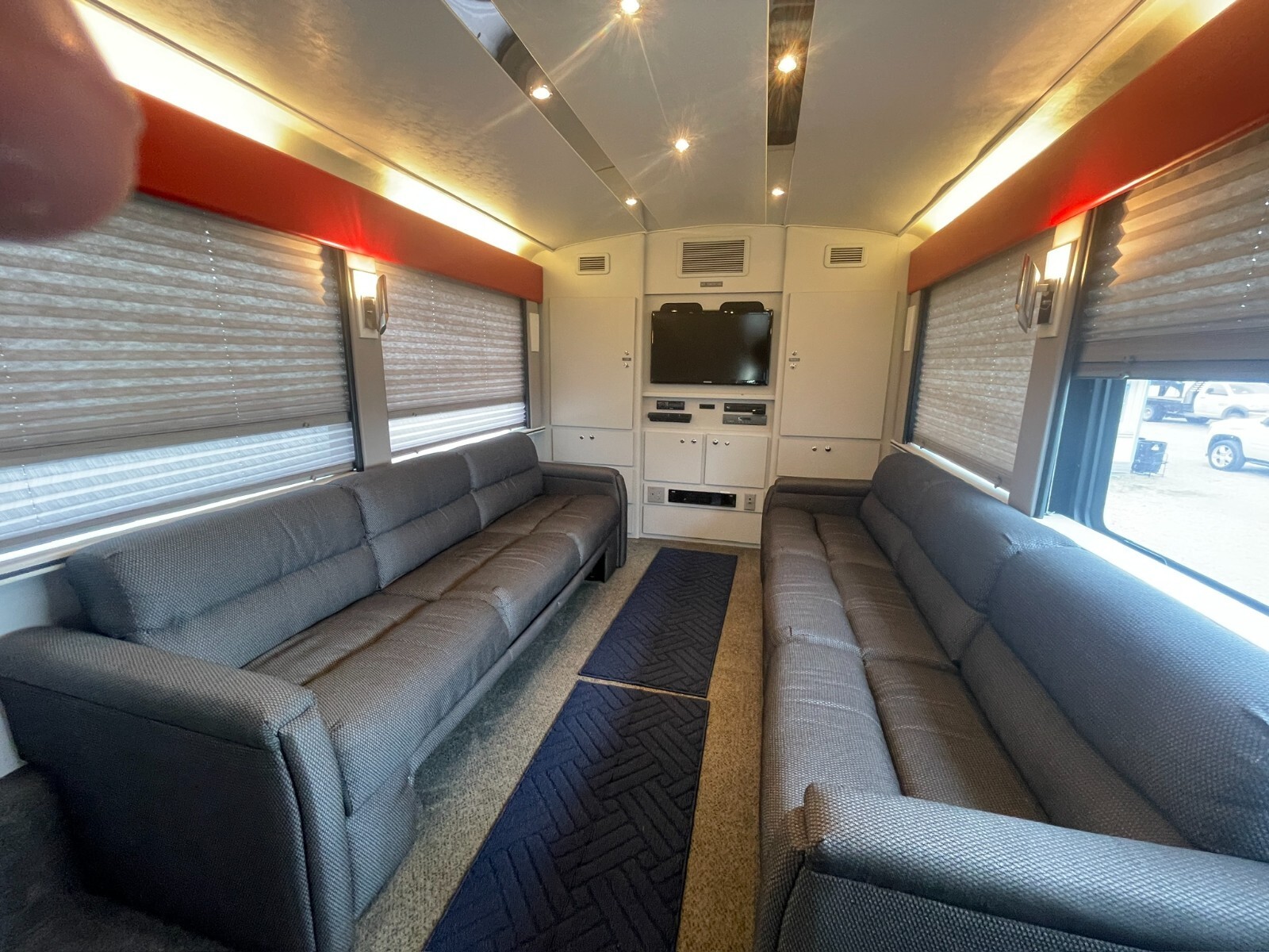 The1998 MCI 102DL3 Executive Day Coach, built byCustom Coach Corporation, offers a rare and well-maintained layout designed forprofessional travel, business tours, or extended on-the-road living. a60 Series Detroit enginewith anAllison HD 4060 transmission, this motorcoach delivers dependable performance and smooth handling. At 45 feet long and 102 inches wide, it comfortablyseats 20 and sleeps 5, featuring a private rear sleeping lounge,full galley, and a spaciouswalk-in shower— a rarity in executive-style conversions. The interior is finished withberber carpet, vinyl swivel chairs, and dual sofas that convert into a queen-sized bed, creating a smart blend of luxury and functionality. Backed by aKohler 20kW generator,house Cruisair HVAC system, and a115-gallon fresh water tank, this coach is equipped to support extended trips with ease. Whether you’re seeking a clean, reliableMCI bus conversionor a professionally appointedexecutive day coach, this unit is turnkey and ready for its next owner. Never a passenger Coach, comes with a Motor Home Title. Mileage is only 295K. Trades Considered.