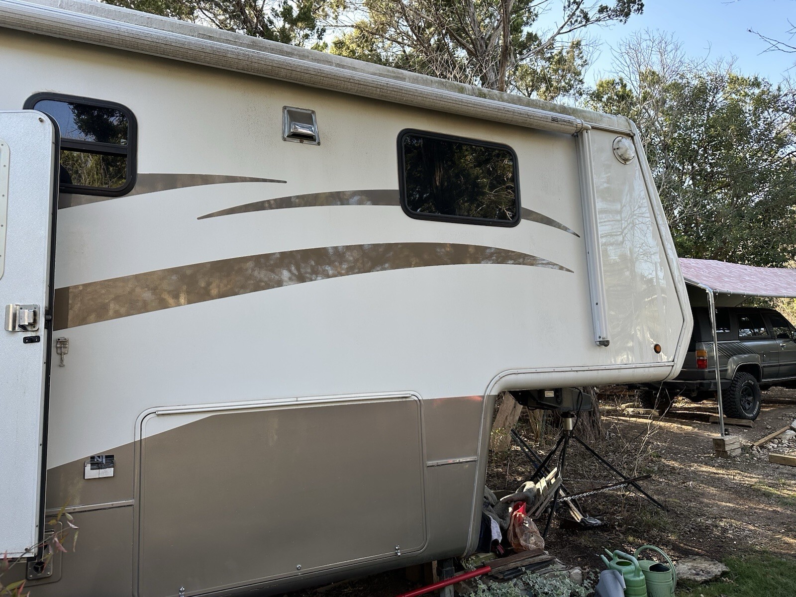 Great as a full time live in rig, or add a generator (pre wired for) and go completely off grid on a new home build site, deer lease, ranch, fire rebuild. Only selling because I'm selling my home and don't want to pay storage. Feel free to ask any questions before bidding. Happy to make it available for inspection anytime. Sold as is, where is, buyer responsible for pick up/transport. I require a $500 deposit within 24 hours of auction completion. Full payment in 48 hours. Prefer pick up by 4/15/25 but extended arrangements can be made. Happy Bidding, and memorable campering!