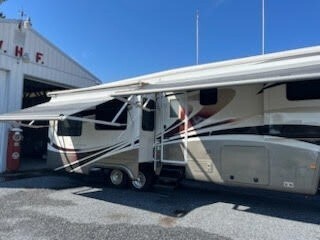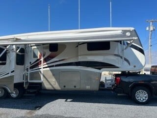 “For sale is a well-maintained 2012 DRV Mobile Suites 36TKSB3 Fifth Wheel, built for full-time luxury living and four-season comfort. This unit is loaded with high-end features, including an in-floor safe, dual awnings with wind sensors for added protection, and a powerful 5.5kW gas generator for off-grid capability. It has always been stored in climate-controlled storage when not in use and was outfitted with new tires in spring 2024. The Arctic Package with dual heaters ensures you're ready for any climate, while the heated and cooled under-storage and fully heated holding tanks provide added cold-weather reliability. Additional features include two 40lb propane tanks, a premium Bose sound system, and an overall design focused on comfort and convenience. This DRV Mobile Suites offers top-tier quality and is road-ready for your next adventure.”