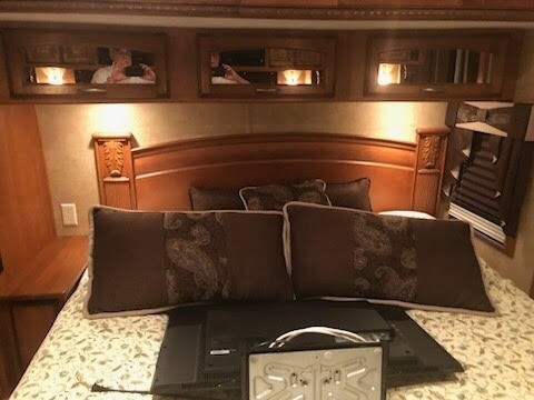 This DRV has an overall length of 36 feet and comes equipped with 4 power retractable slide-outs with toppers, 2 power retractable awnings with wind sensors, 2 A/C units, a generator, and plenty of room to sleep up to 4. This unit has been well-maintained.
