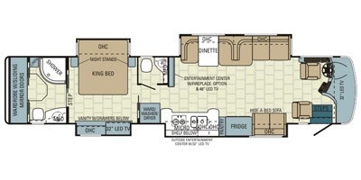 This Entegra is powered by an 8.9L I6 diesel engine and a 6-speedautomatic transmission with 24,000 miles. The overall length is 43.08 feet and comesequipped with 4 power-retractable slide-outs, 2 power-retractable awnings, 3 A/Cunits, a diesel generator, 1½ baths, a washer/dryer, an outdoor entertainmentsystem, and plenty of room to sleep 3. This unit has been well-maintained.