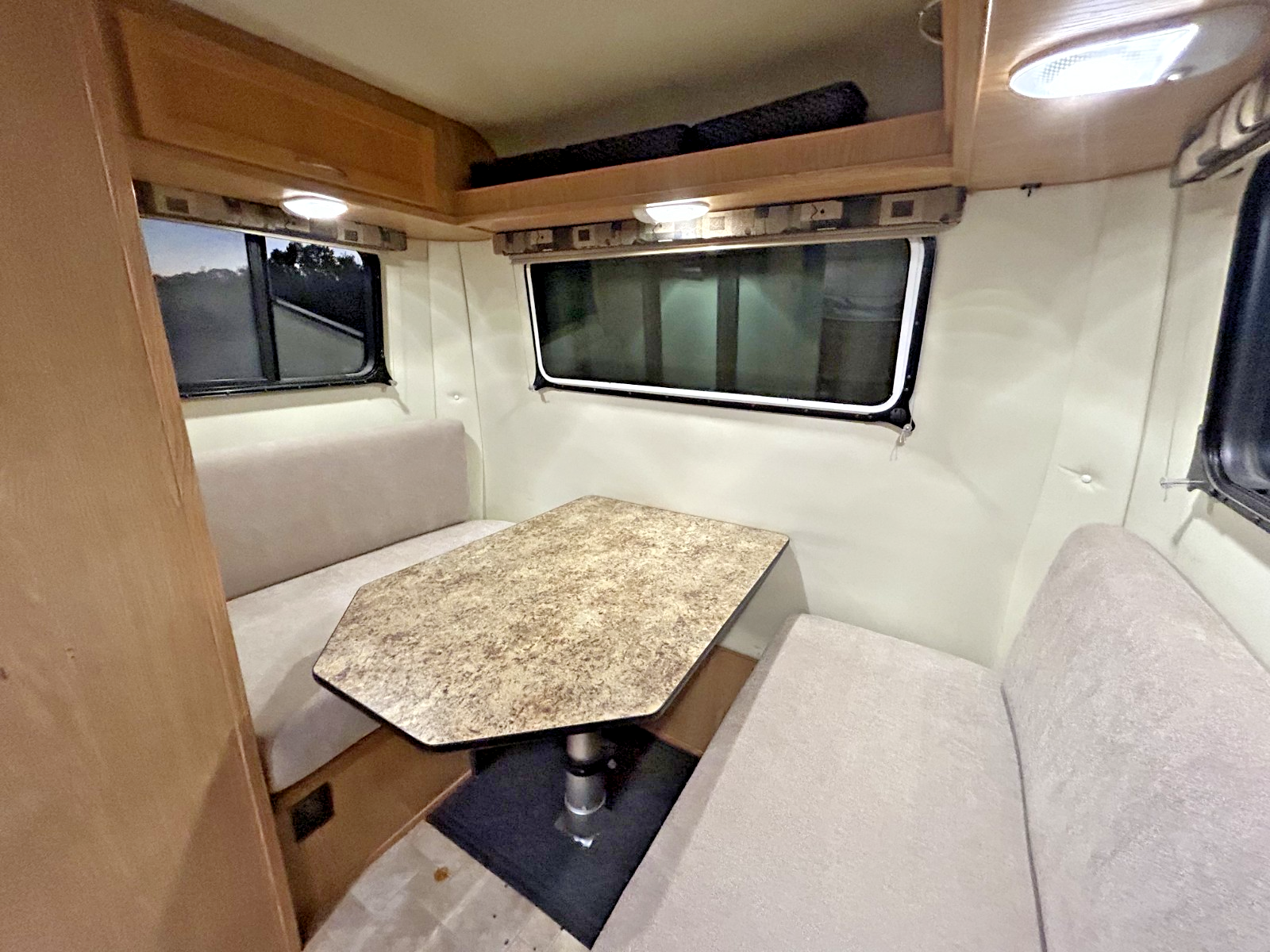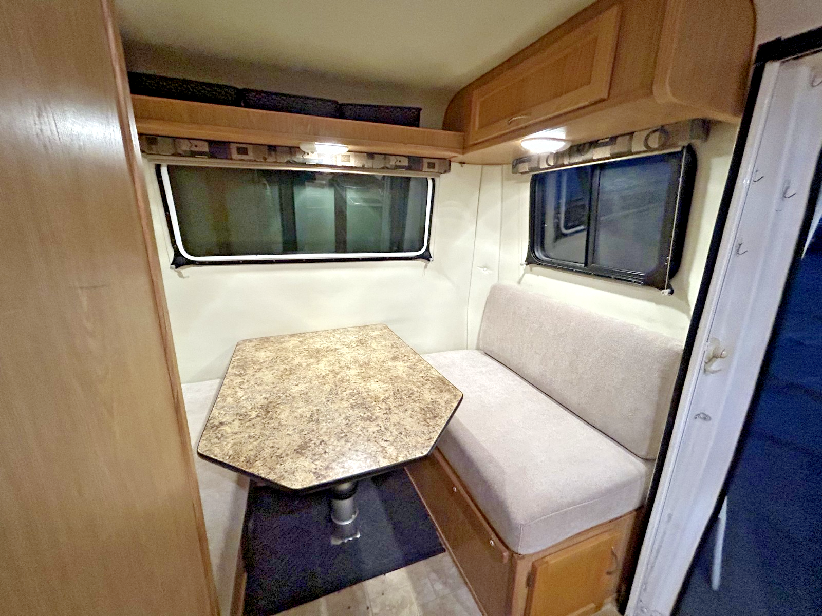 Lots of storage under rear bed and front dinette as well as many upper cabinets