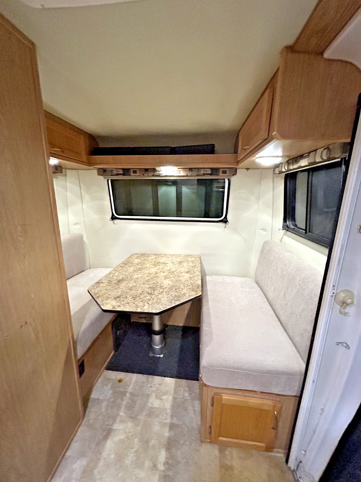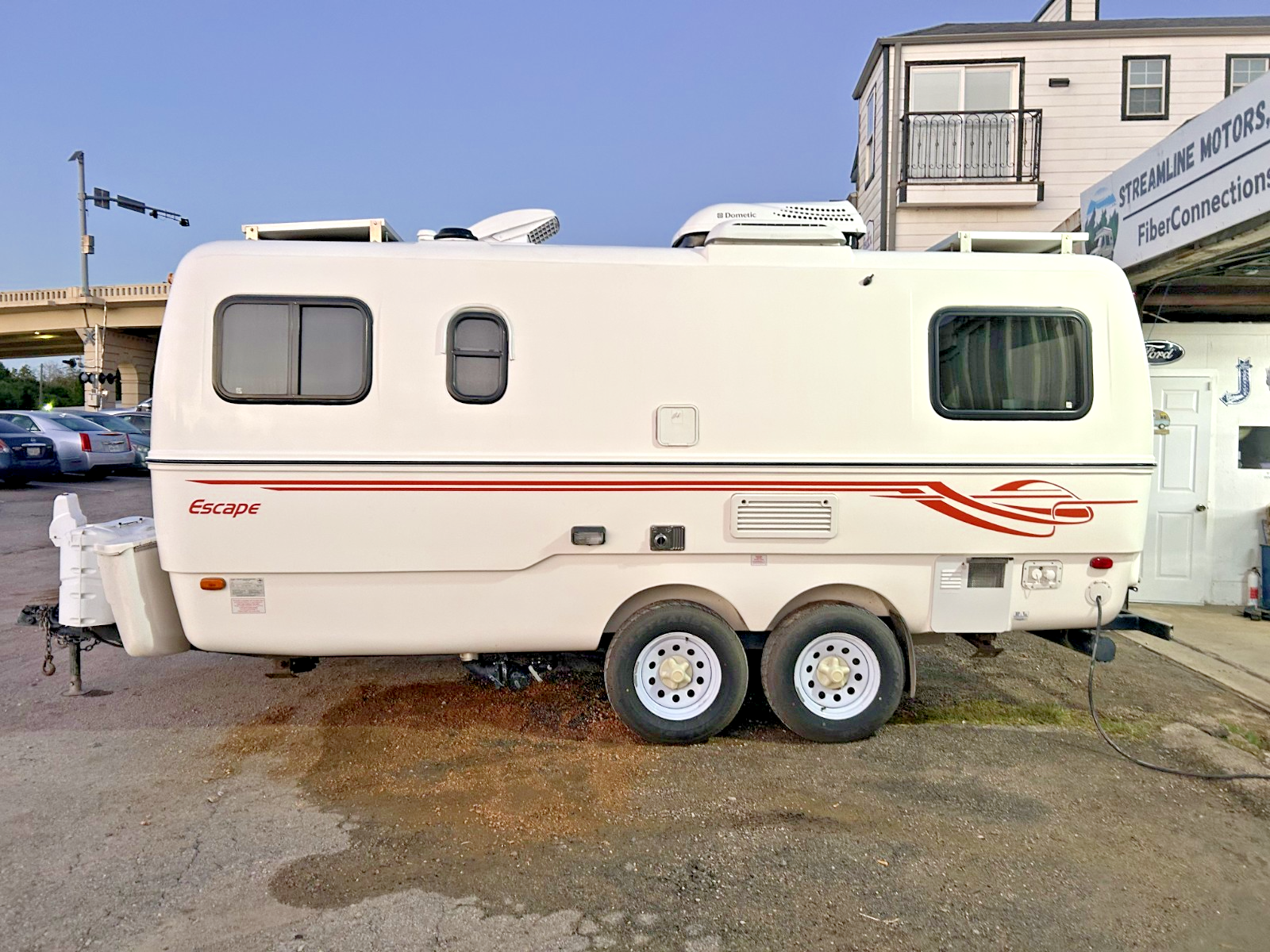 This Escape camper was purchased from an insurance company and currently has a Salvage Title, which can be converted to a Rebuilt Salvage Title by the next owner. According to the original owner, the camper was in the vicinity of a forest fire but did not sustain any fire or heat damage. However, some smoke did reach the interior.The interior has been thoroughly cleaned, dehumidified, and ozone treated. The mattress has also been replaced with a newer one, leaving the camper fresh and ready for use.