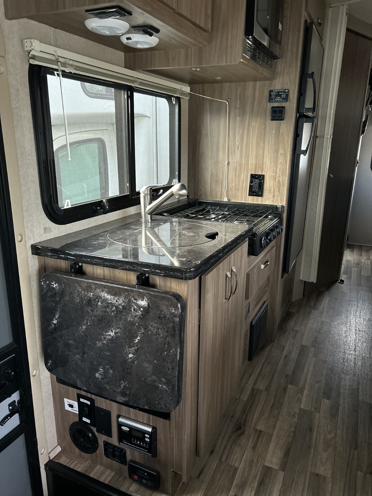The 2017 Dynamax Isata 3500 Diesel motorhome is a class C RV designed for comfortable travel and camping. This specific model includes leveling jacks, a full couch awning, and a slide out for added living space while on the road. With sleeping capacity for up to 4 people and an air conditioner included, this motorhome offers a cozy and convenient travel experience. The diesel fuel type ensures efficient and reliable performance, making it a great option for road trips and camping adventures. It has full sized bed, shower and a generator. very easy and comfortable to drive.