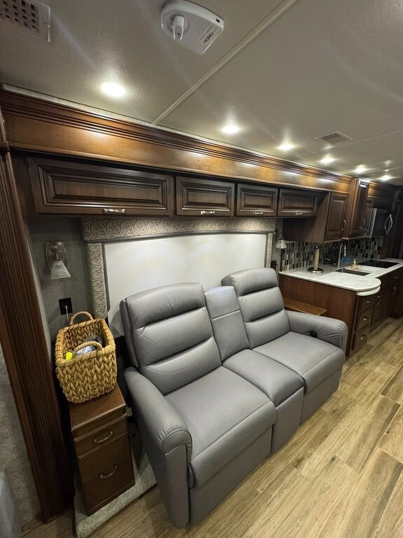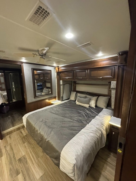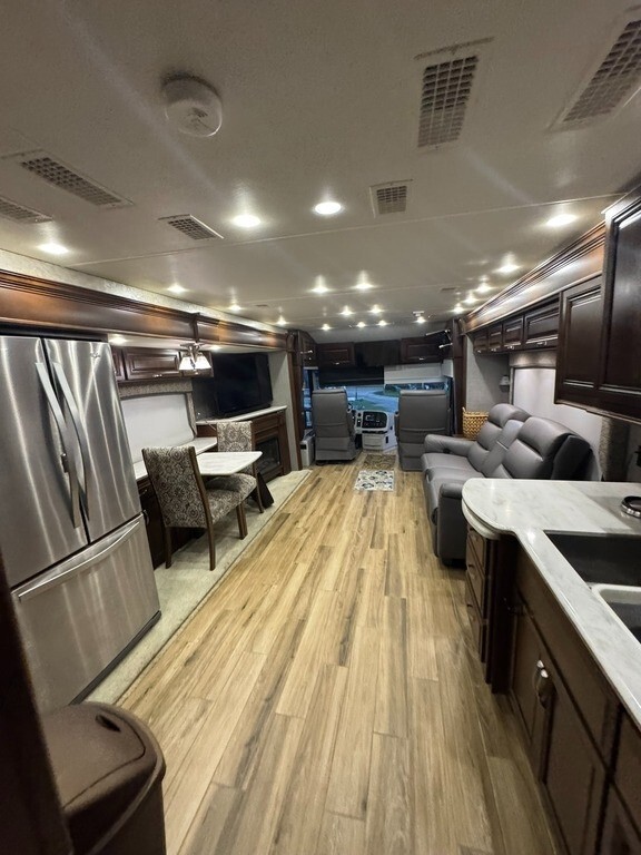 “This 2017 Entegra Coach Insignia 44B is a well-kept, luxury Class A diesel that’s been carefully maintained. It has new tires and features an electric-start generator that can be started even if the house batteries run low. The coach has been non-smoking and pet-free, and the overall condition is excellent. The exterior 5-tone paint is in great shape with only very minimal scratches, and the interior is clean and comfortable. The front seats show some normal wear, but everything functions as it should. A high-quality, reliable diesel pusher that’s ready for comfortable travel and extended stays.”