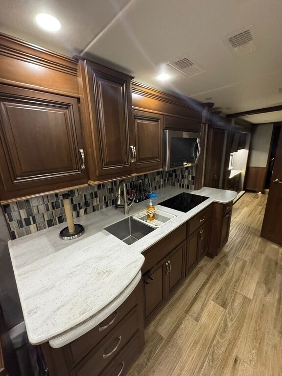 2017 Entegra Coach Insignia 44B Class A Diesel For Sale in Tampa, FL 33629 This Entegra is powered by an 8.9L I6 diesel engine and a 6-speed automatic transmission with 28,620 miles. The overall length is 44.92 feet, and it comes equipped with 4 power-retractable slide-outs, 2 power awnings, 3 A/C units, a generator, 1½ baths, a washer & dryer, a fireplace, an outdoor entertainment system, and room to sleep up to 4. This unit has been non-smoking, pet-free, and well-maintained. Kitchen/Living Area Features 2-Burner Induction Stovetop Microwave Oven Residential Fridge/Freezer Sink & Faucet