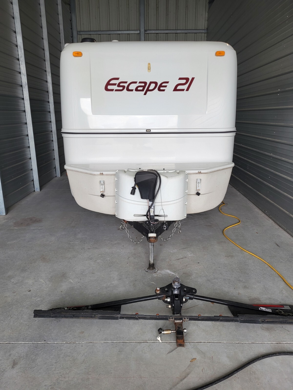 2019 Escape 21 Fiberglass travel trailer for sale near Brunswick, Georgia. Illness forces sale (Parkinsons). Well-traveled (40K miles) and kept in a storage locker (by Exit 29) when not in use.